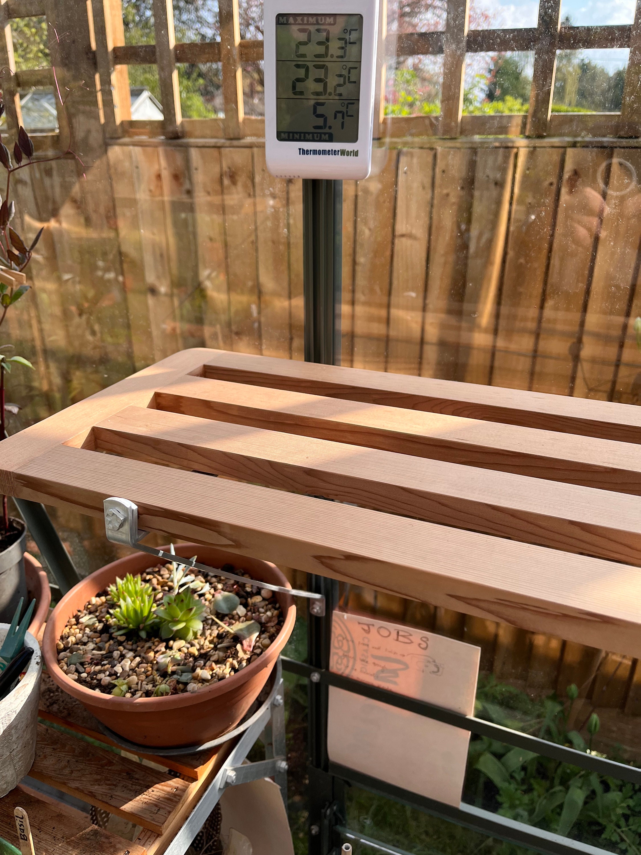 Beautiful handmade greenhouse shelf. Made from durable cedar. Cedar is naturally water repellent, st...