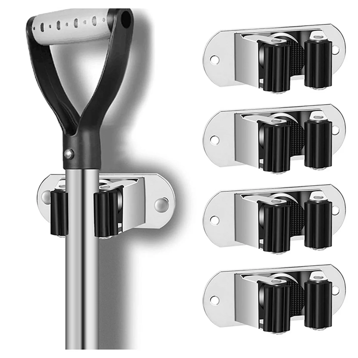 Storage Racks 4Pcs Mop and Broom Holder Wall Mount Heavy Duty Stainless Steel Broom Holder Broom Org...