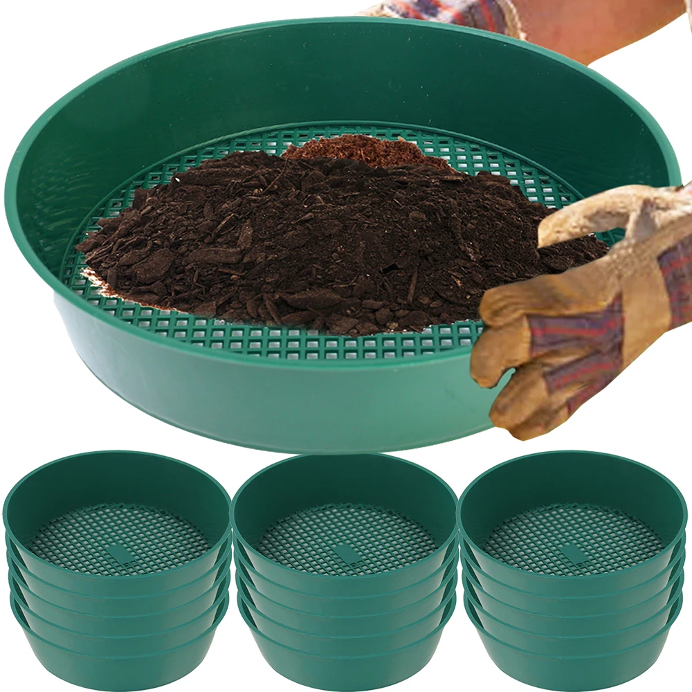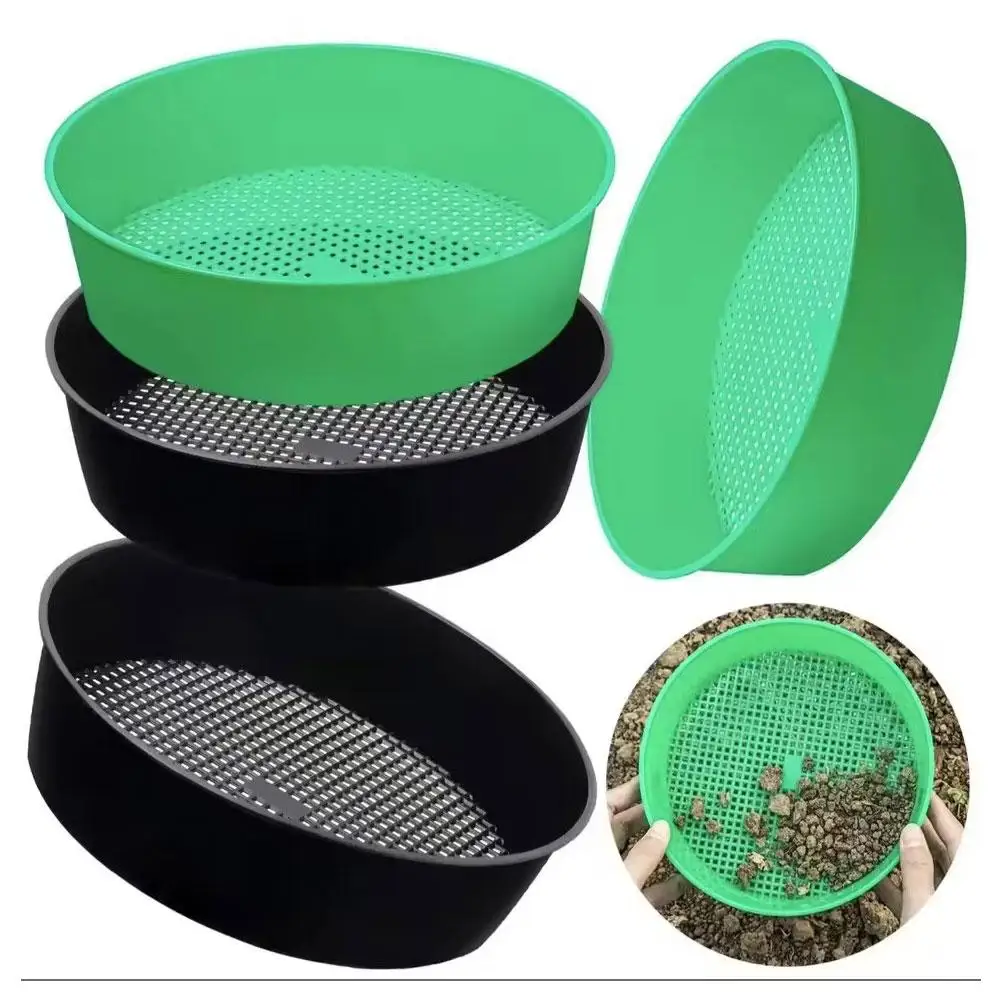 Round Screen Pan Plastic Soil Sieve Filter Mesh Pot Soil Stone Sifter Filtration Home Gardening Tool...