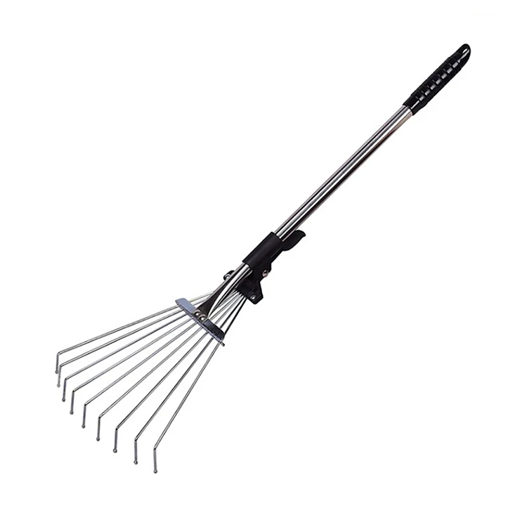 9 Teeth Portable Telescopic Lawns Garden Rake Stainless Steel Colle...