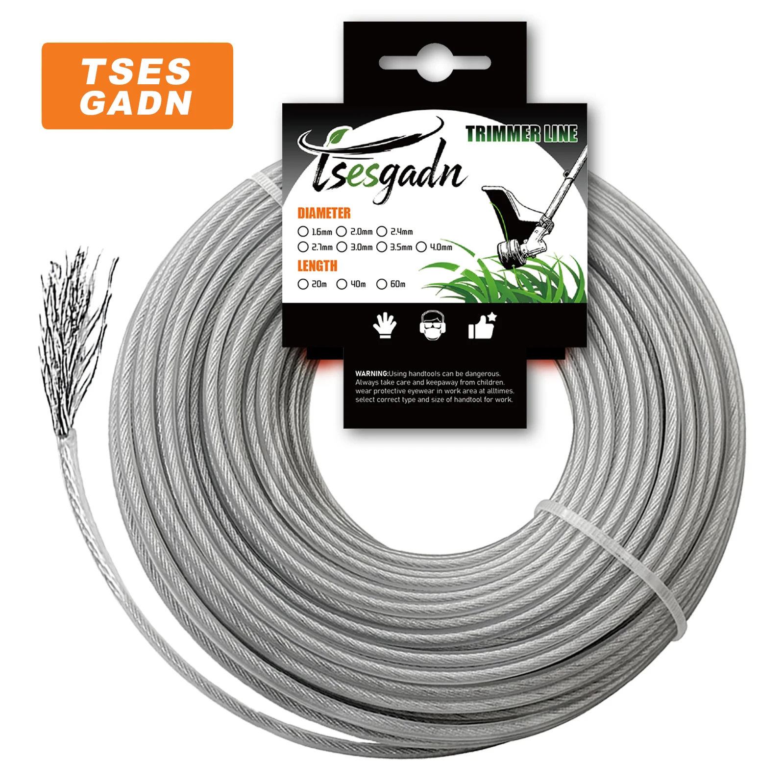 TSES 15m*2.0mm~4.0mm Steel Core Trimmer Line Heavy Duty Weed Replacement Grass Cutting Rope with Wir...