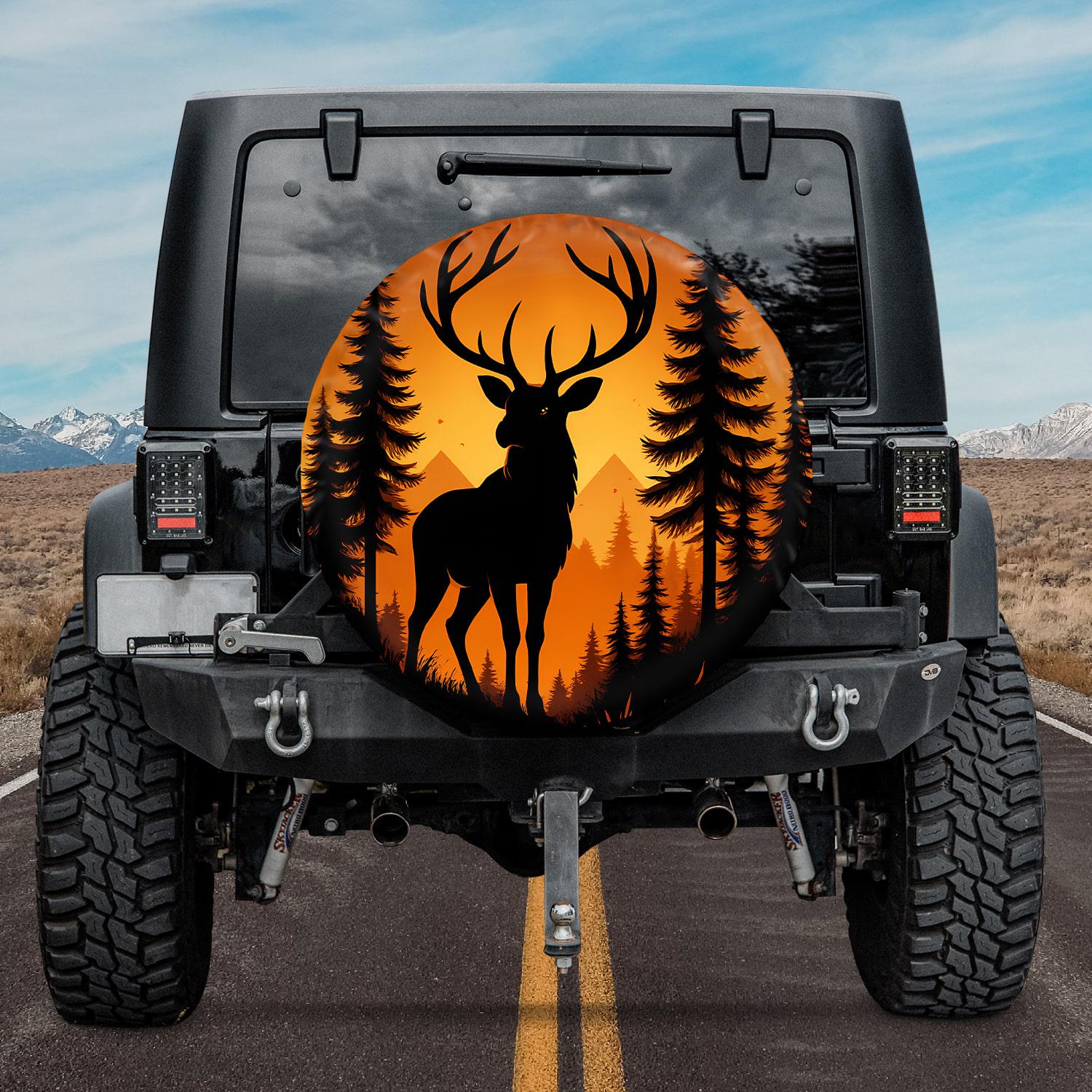 Majestic Sunset Stag Spare Tire Cover, Deer Forest Sunset Spare Tir...