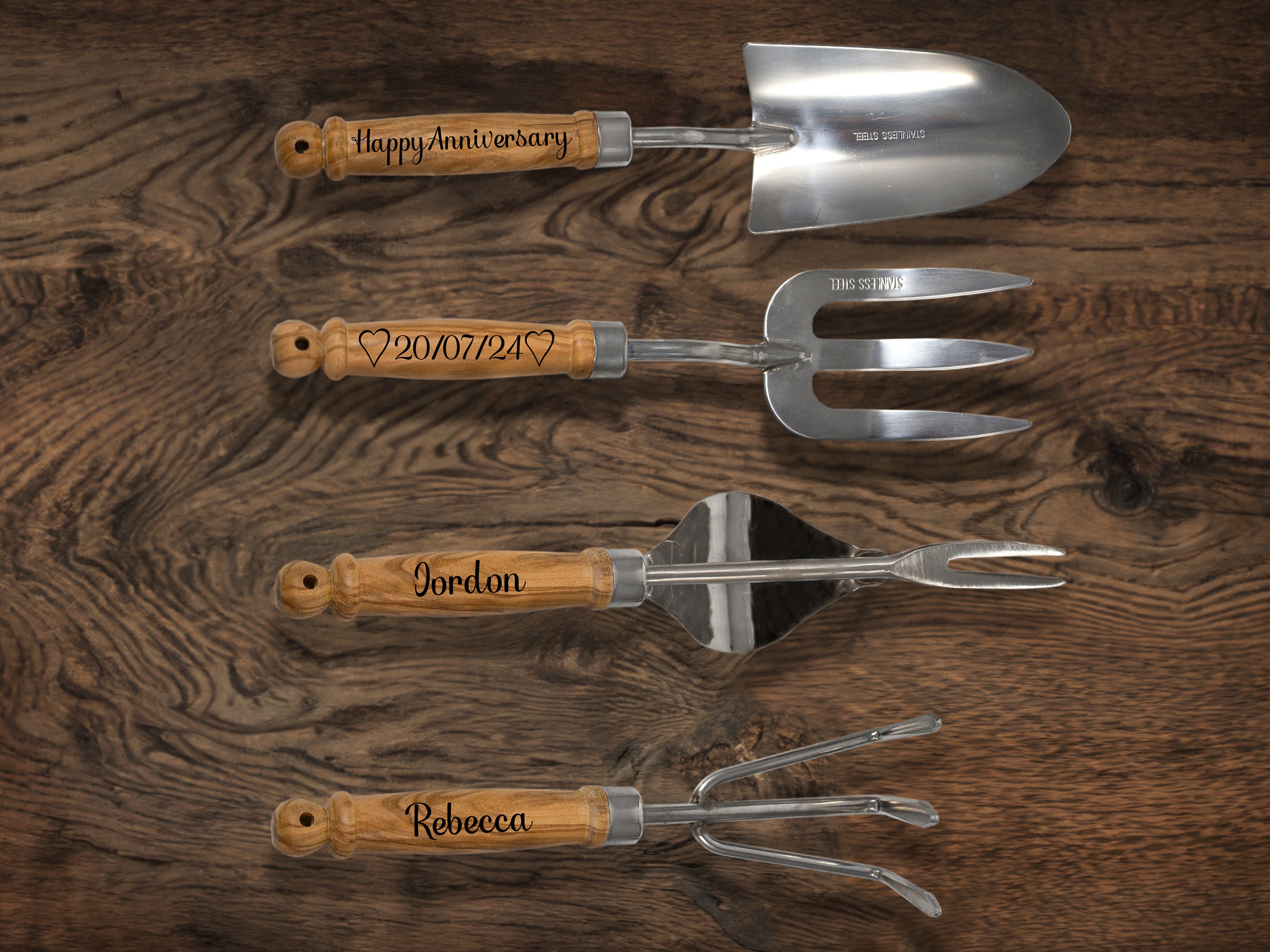 Personalised Olive Wood Gardening Tools, Retirement Gift, Handcraft...