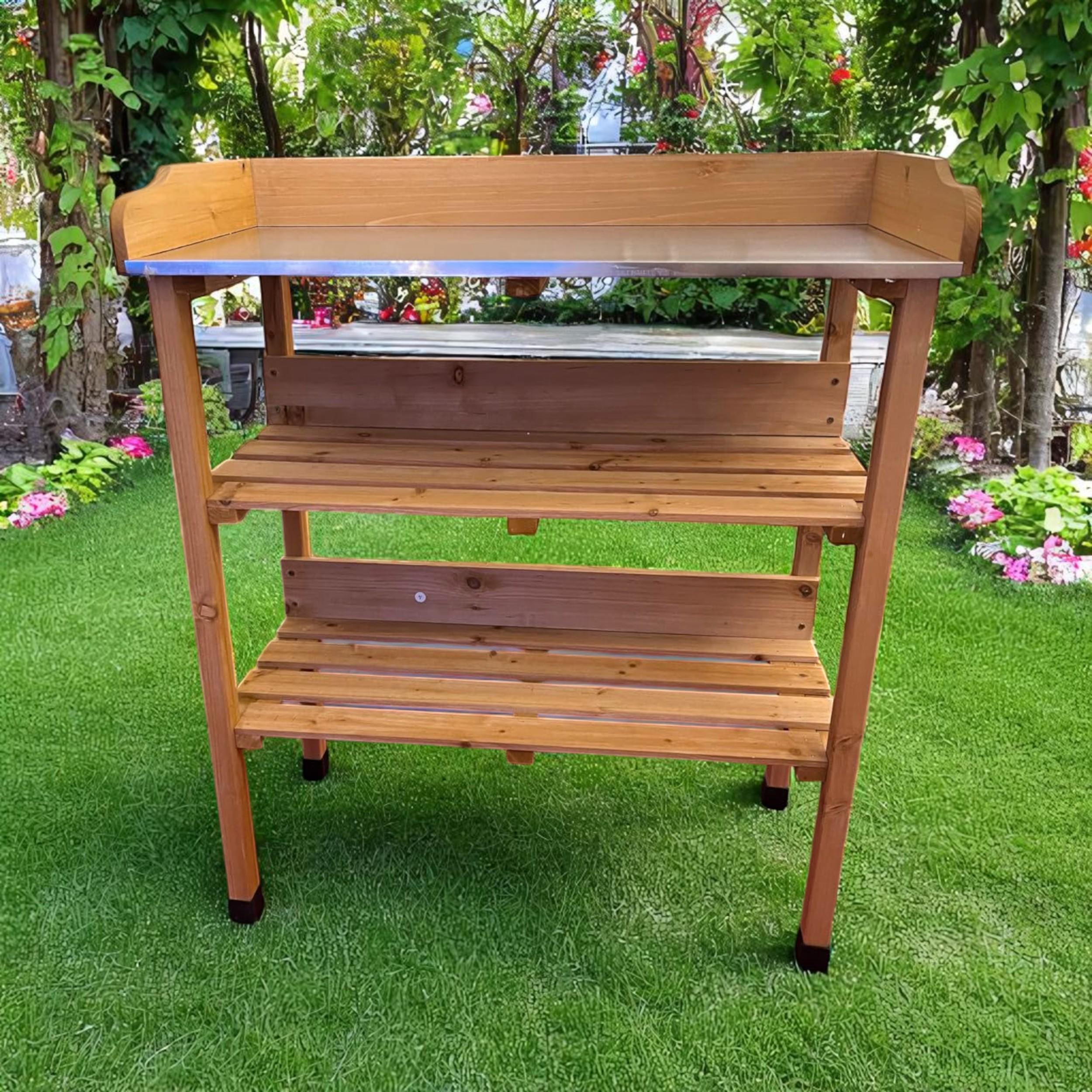 Garden Potting Table, Wooden Planting Potting Bench Work Station wi...
