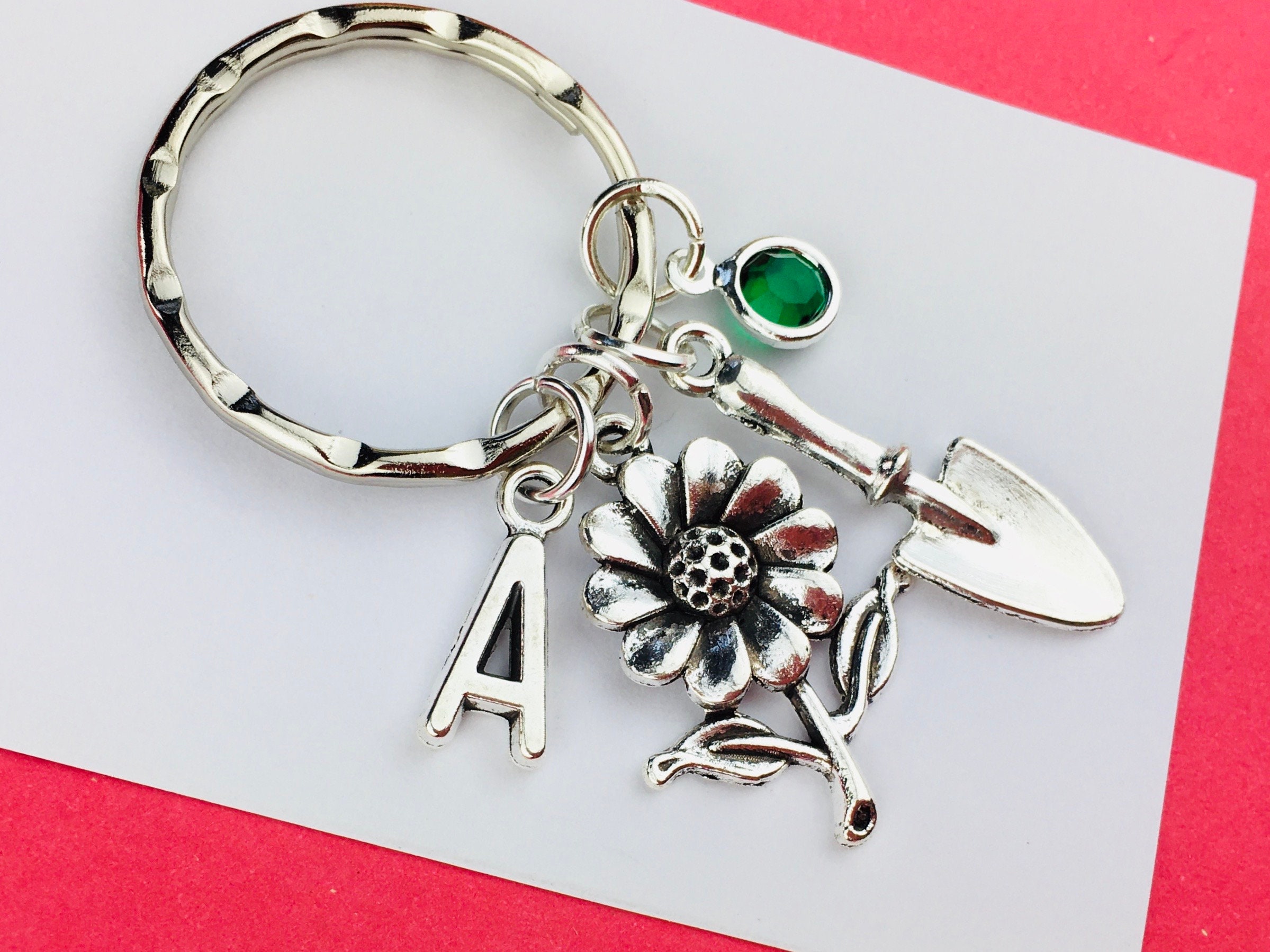 Personalised Gardening Keyring A keyring combined with 4 garden charms, birth month charm (optional)...