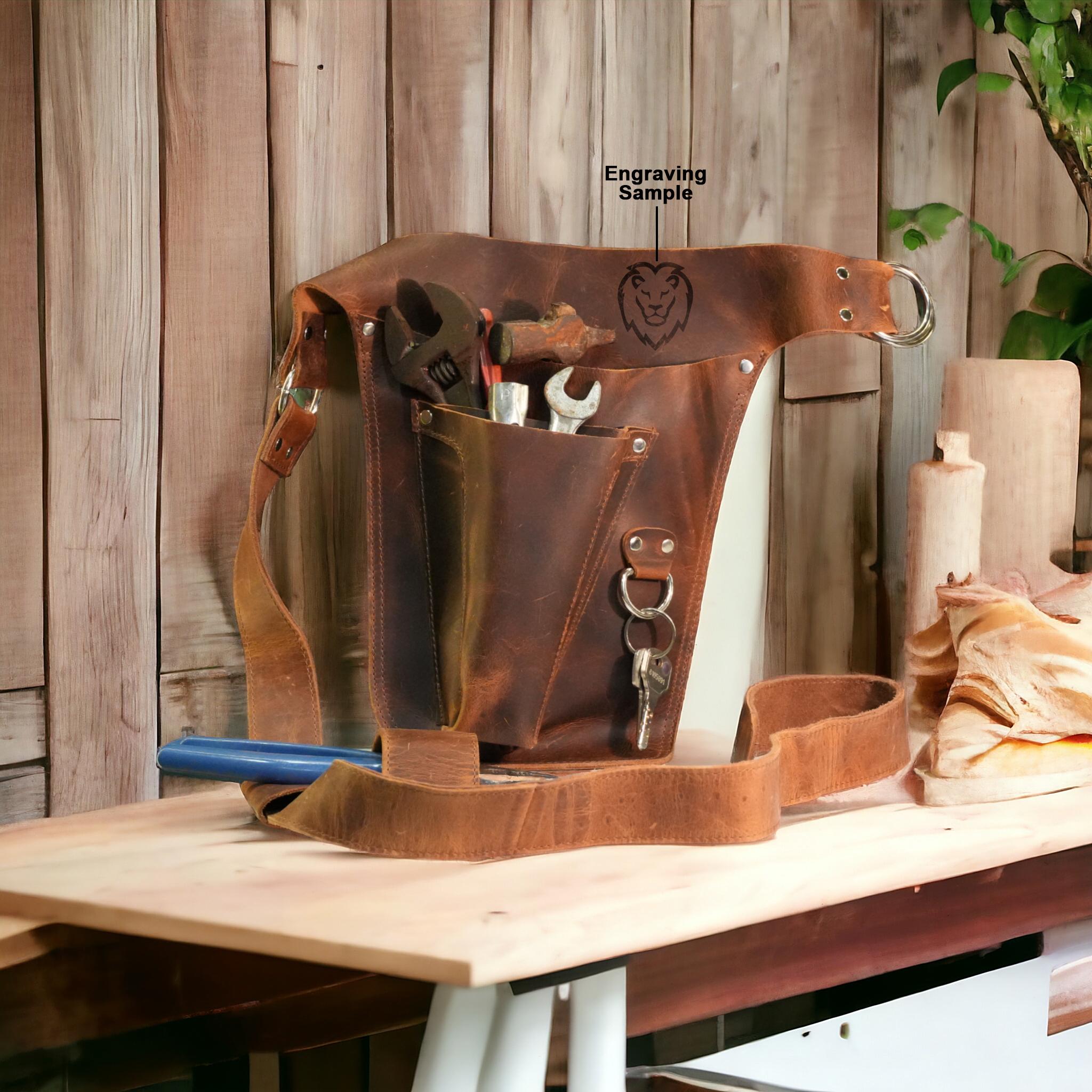 Stay organized and efficient with this personalized leather tool belt. Designed for everyday use, th...