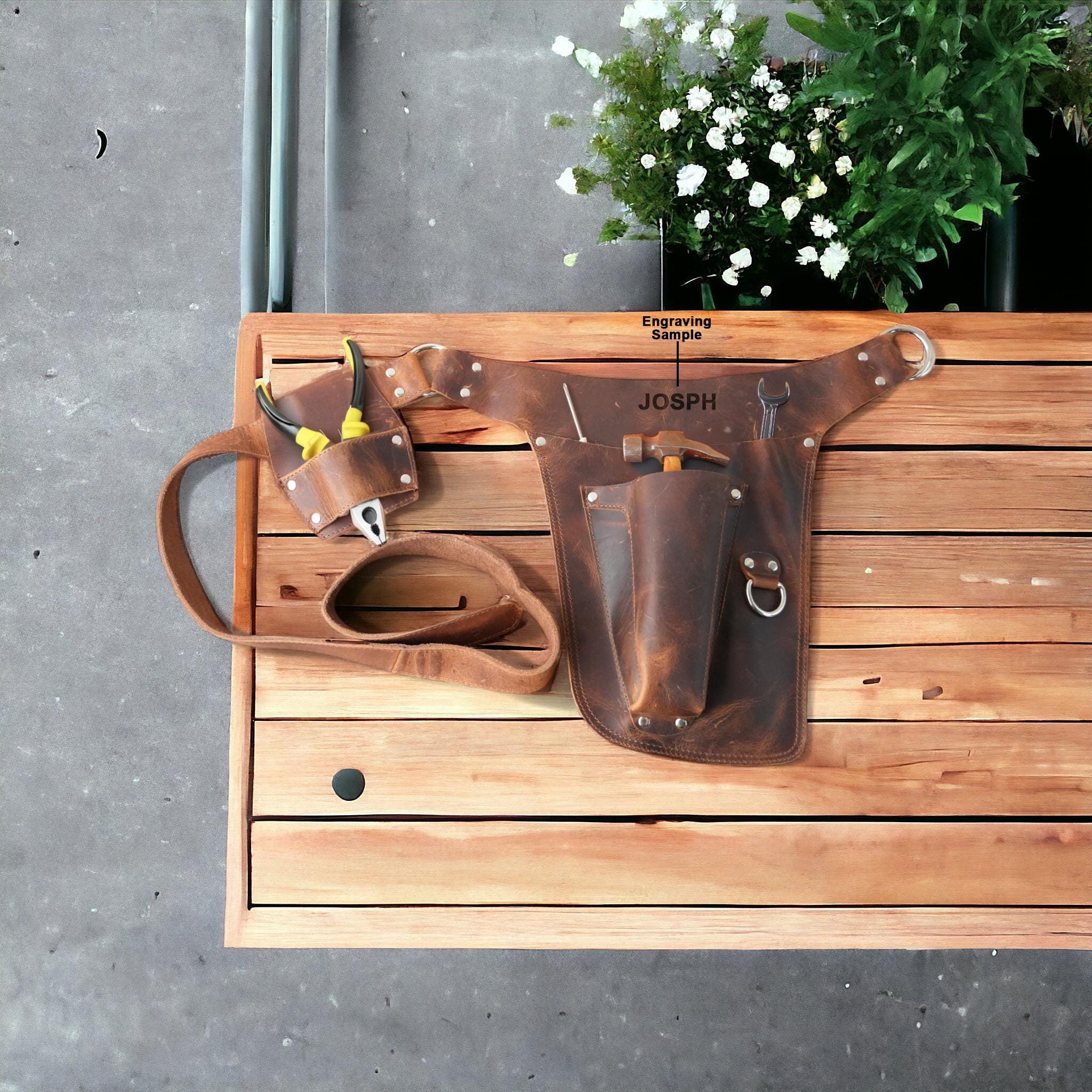 Personalized Leather Florist Garden Tool Belt, Best Garden Belt, Fl...