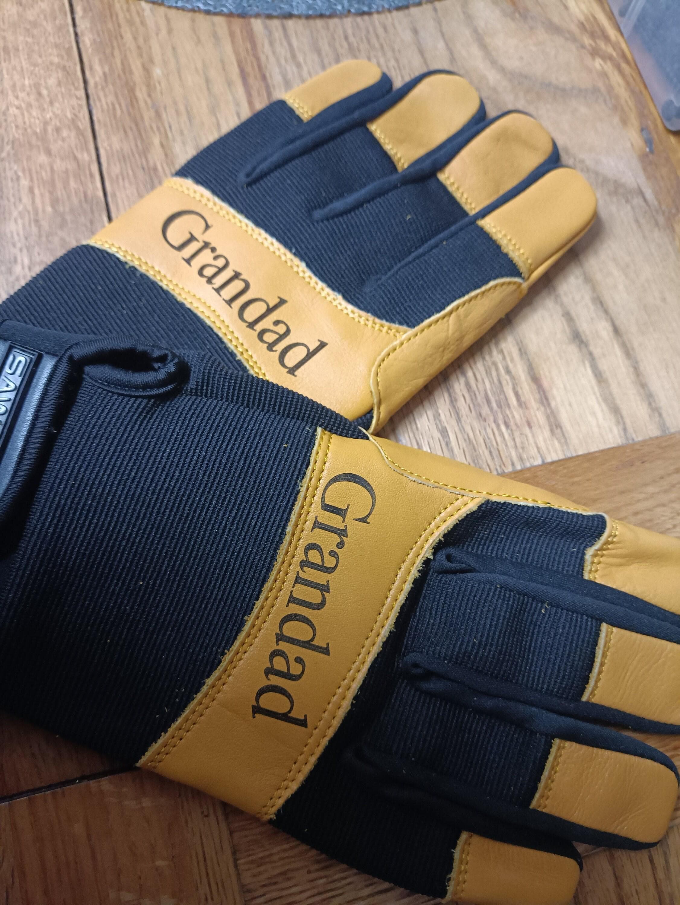 PERSONALISED LEATHER GLOVES. ANY TEXT CAN BE ENGRAVED. Leather palm gloves with safety cuffs are mad...