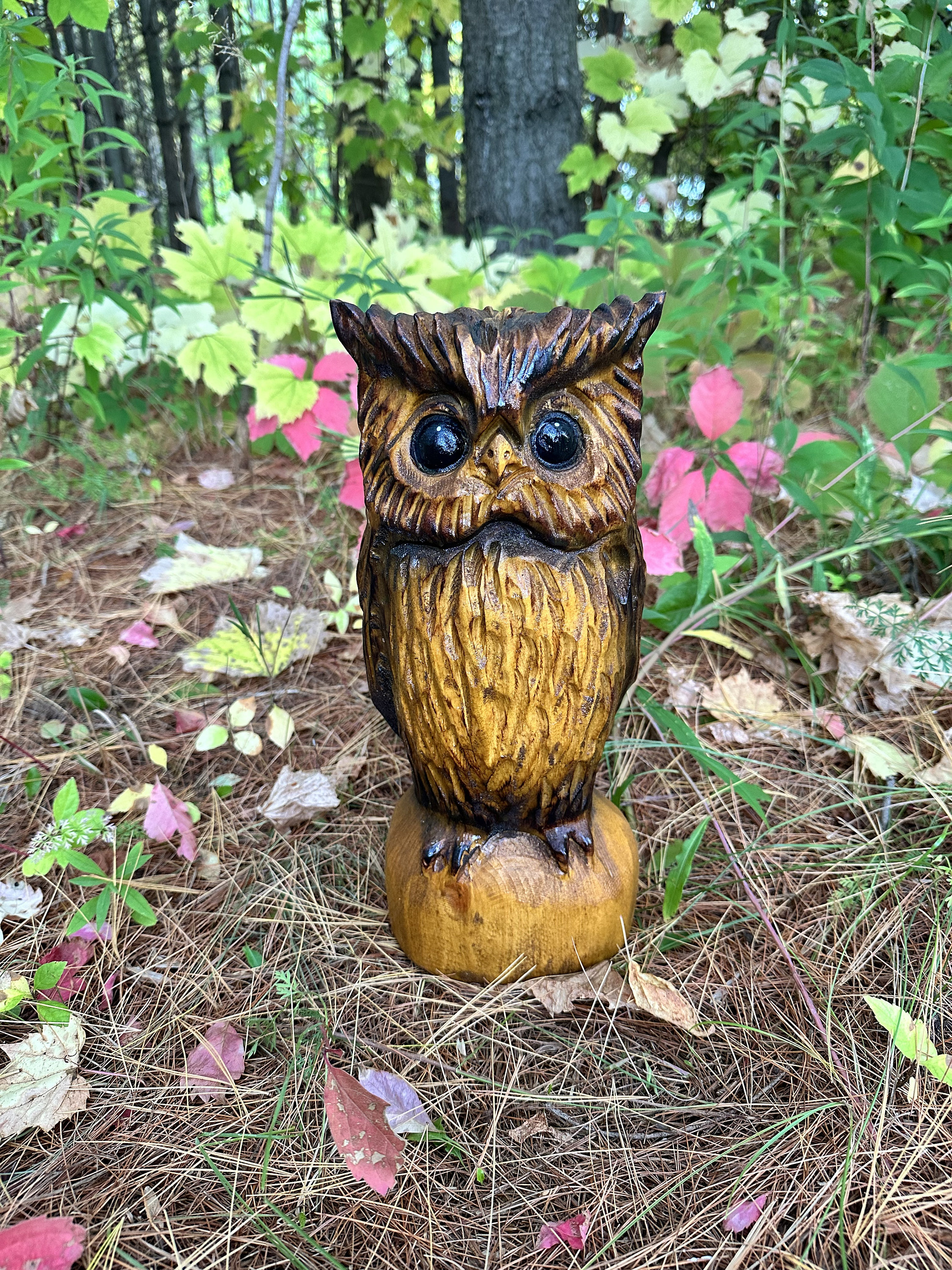 Chainsaw-carved Owl wood carving handmade gift for mom wife Christm...