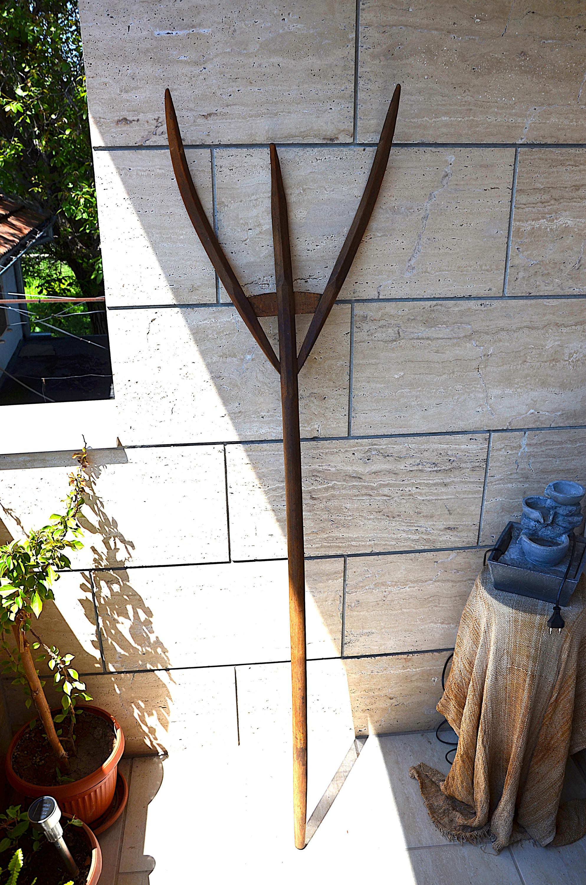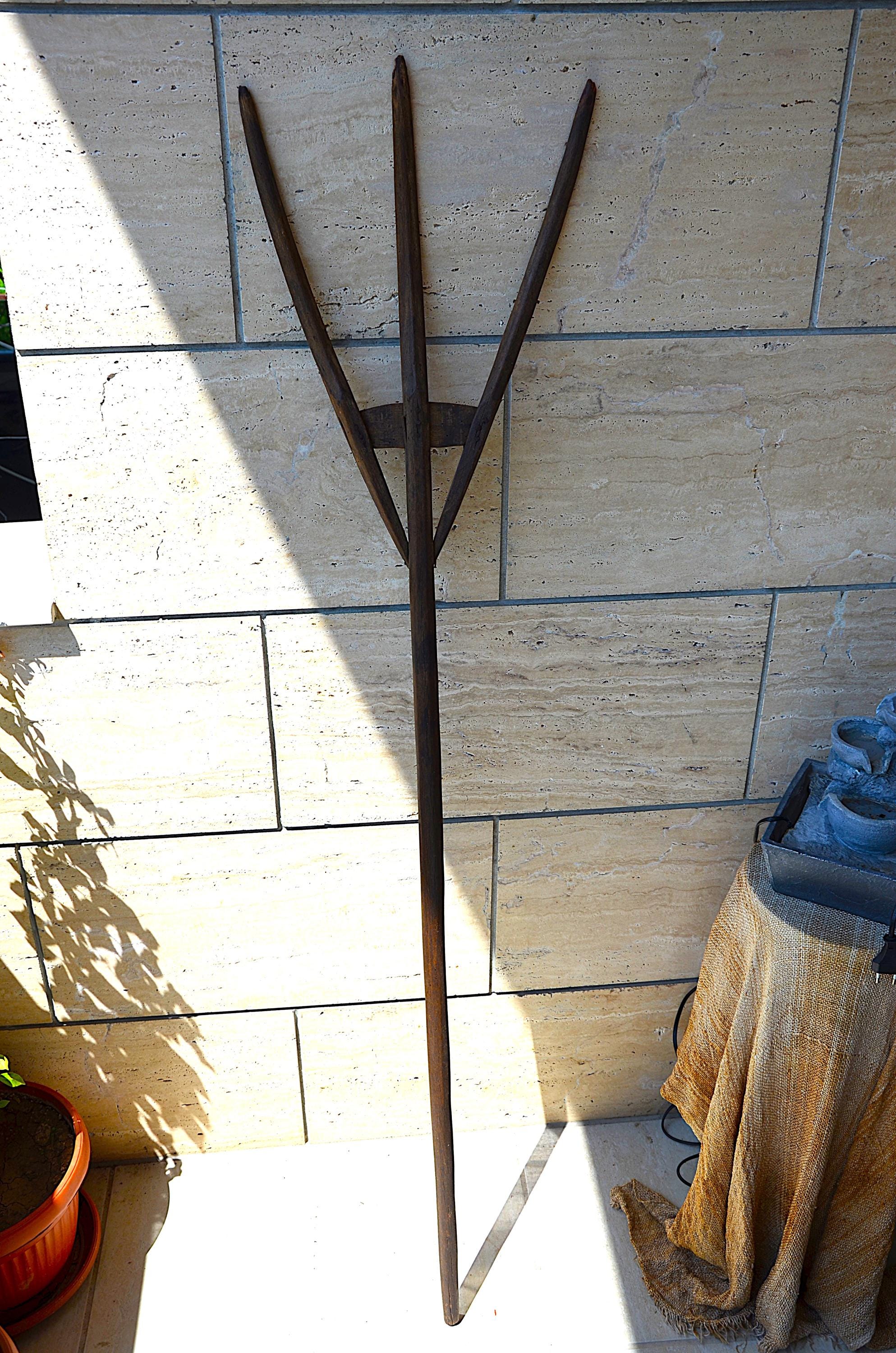 Antique Primitive 19thc Wooden Hay Fork, Rustic Farmhouse Wooden Pitch Fork, Garden Decor Back to my...