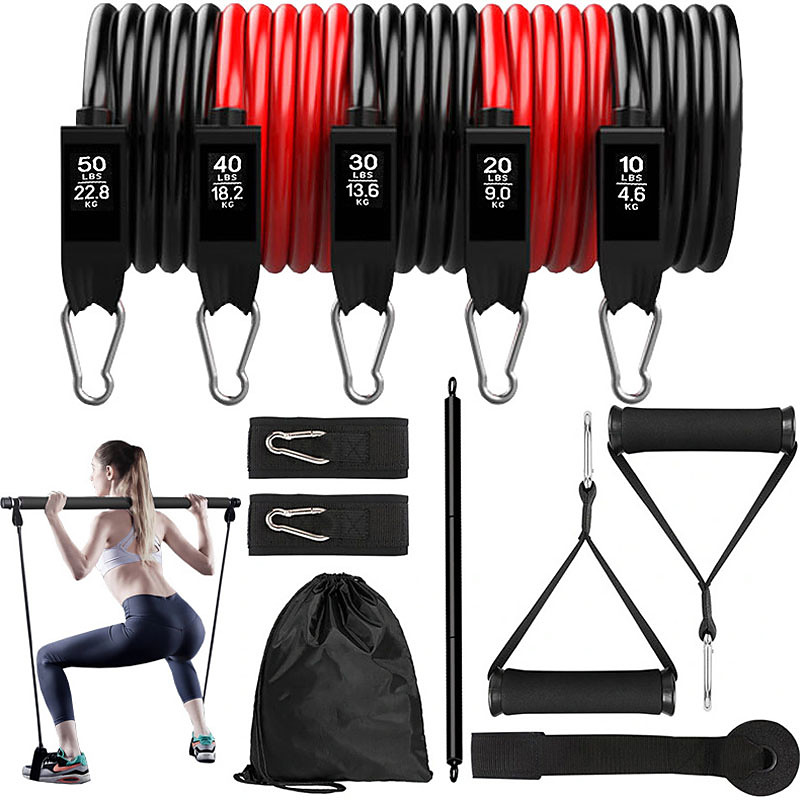 11 piece Bodhi Stick Set Fitness Resistance Belt Tension Rope Elast...