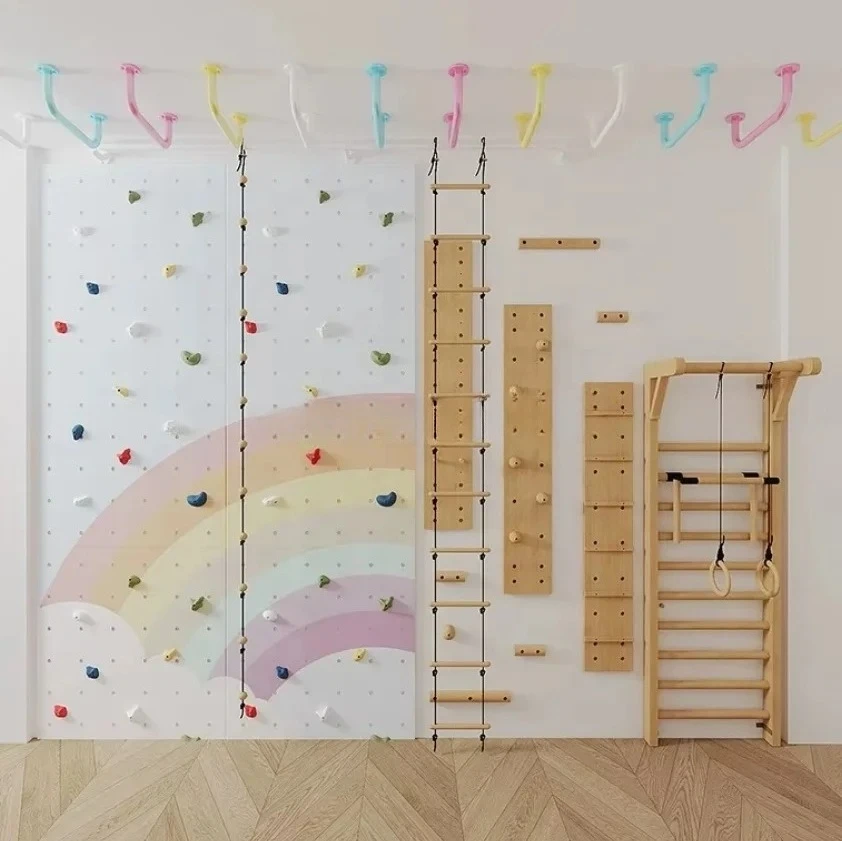 Climbing Frame Wooden Playground Climbing Wall Home Kids Gym Equipm...