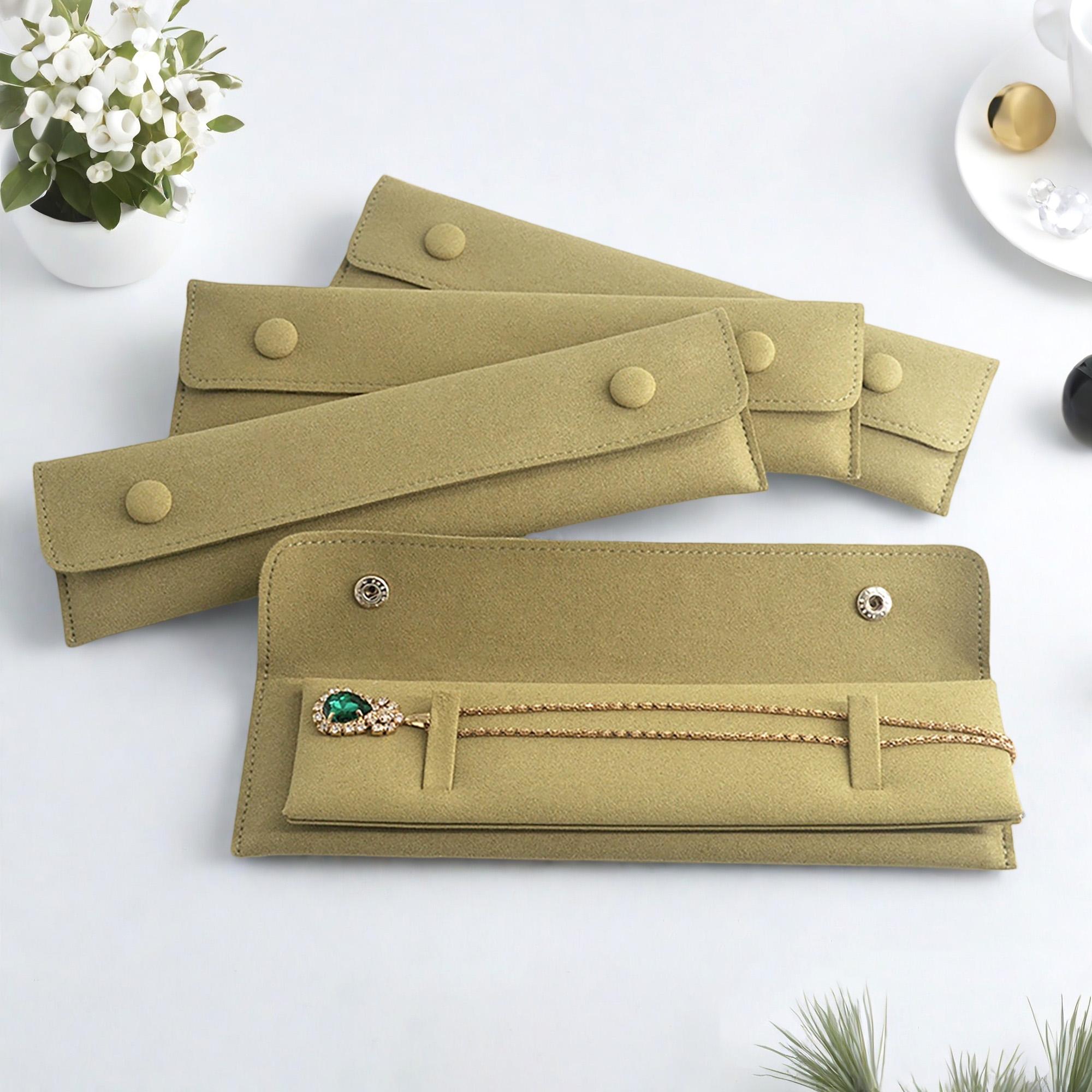 "Green microfiber Envelope snap fastener Jewelry Pouch for necklaces. These microfiber Pouches ...