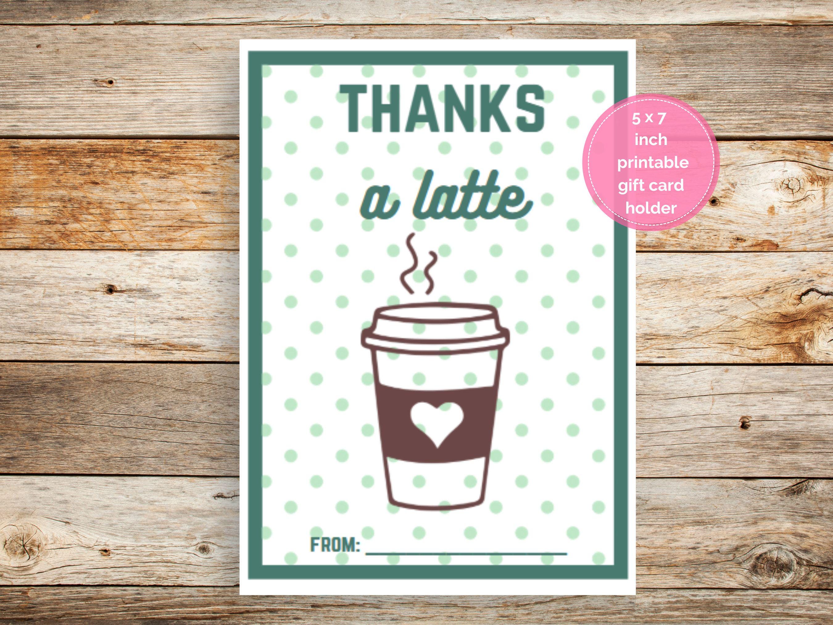 Thanks a Latte Gift Card Holder, Coffee Drinker Gift, Printable Cof...