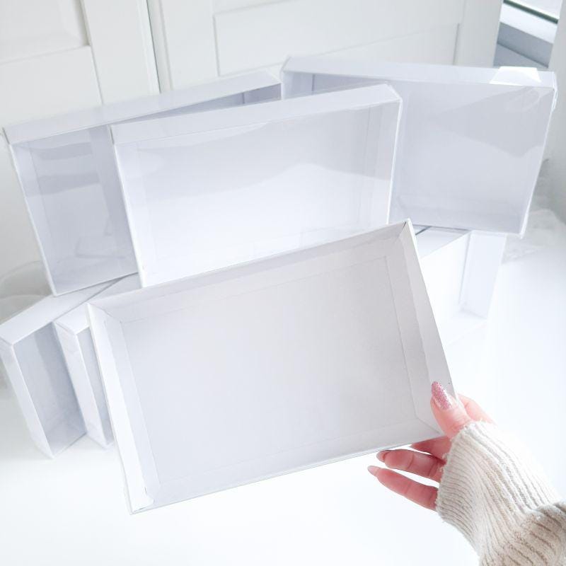 White Rectangle Cookie Boxes with Clear Lid - C6 Size 165mm x 115mm...