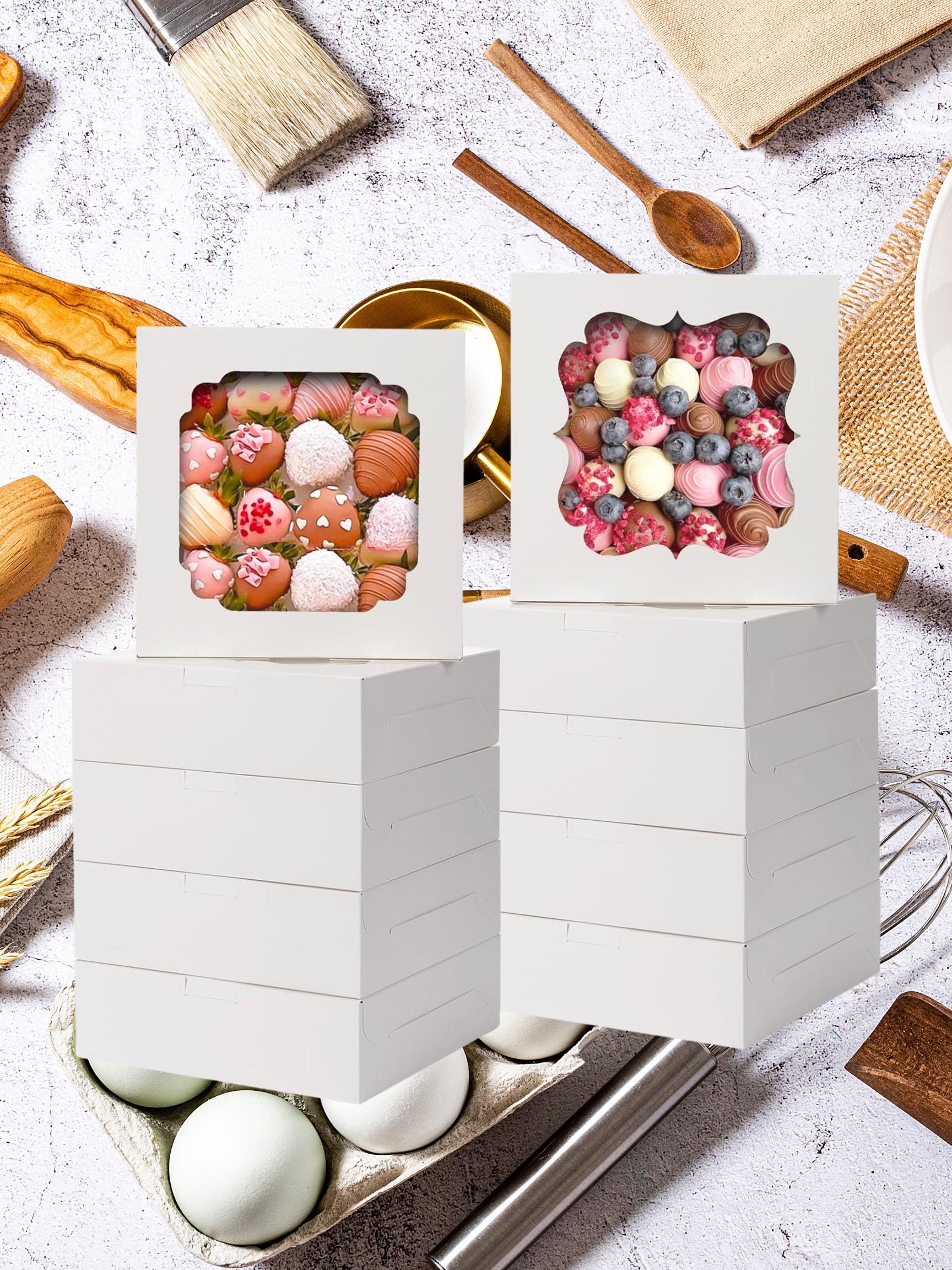60Pcs Cookie Boxes with Windows - 8x8x2.5 Inches white boxes Ideal ...