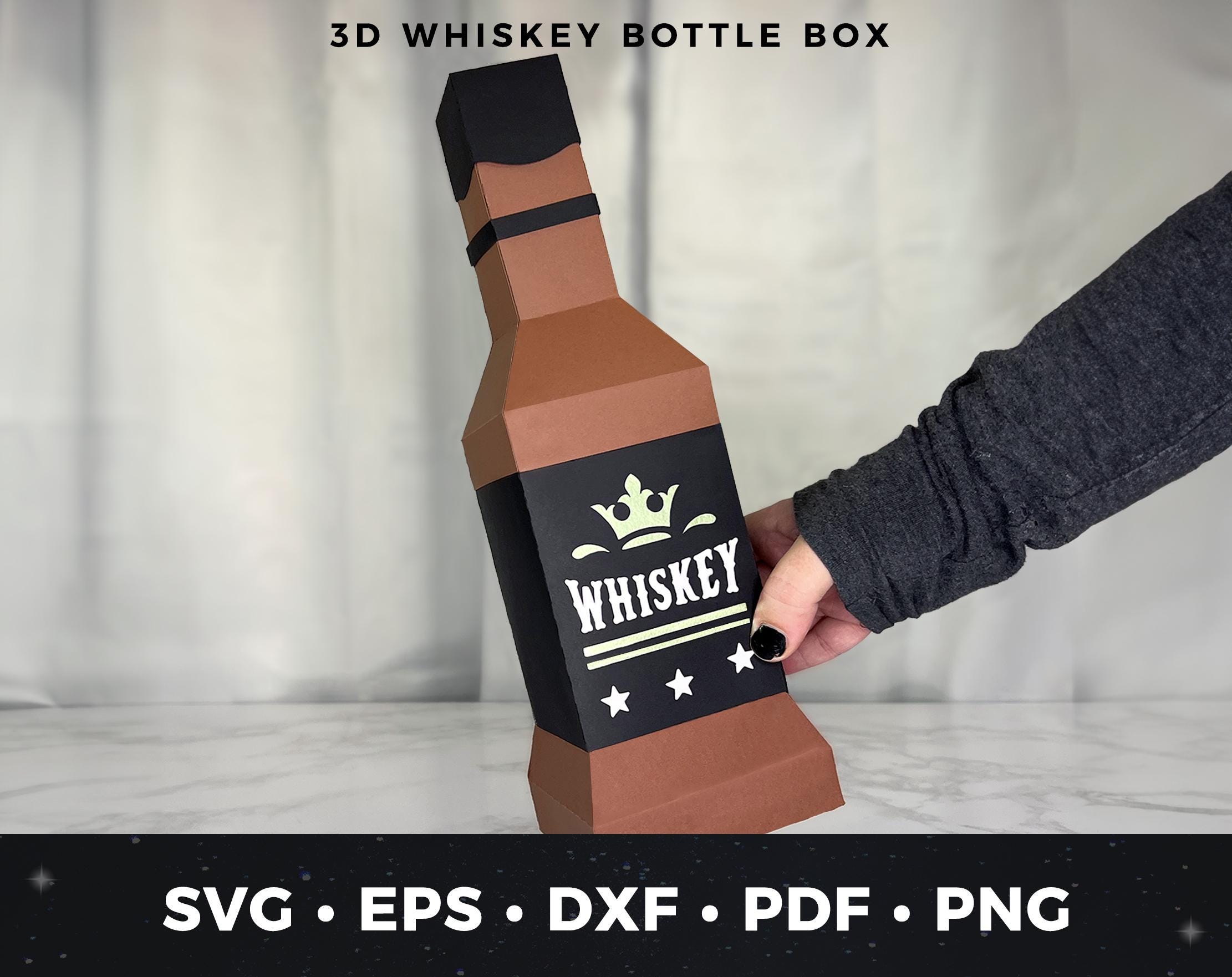Whiskey Bottle Gift Box SVG, 3D Whiskey Bottle Favor Box Template, ...