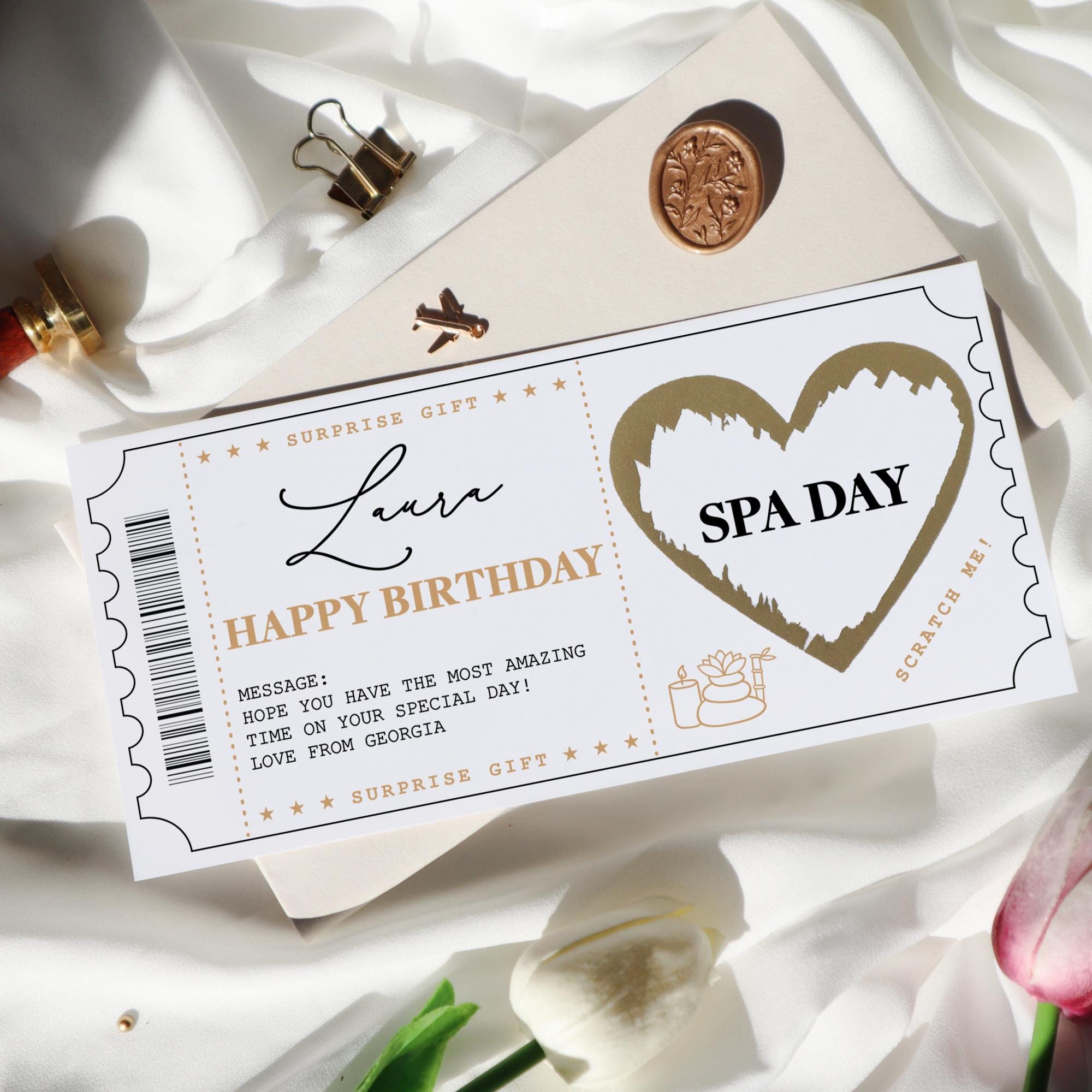 Scratch Card Personalised Spa Gift Ticket Fun Surprise Reveal for B...