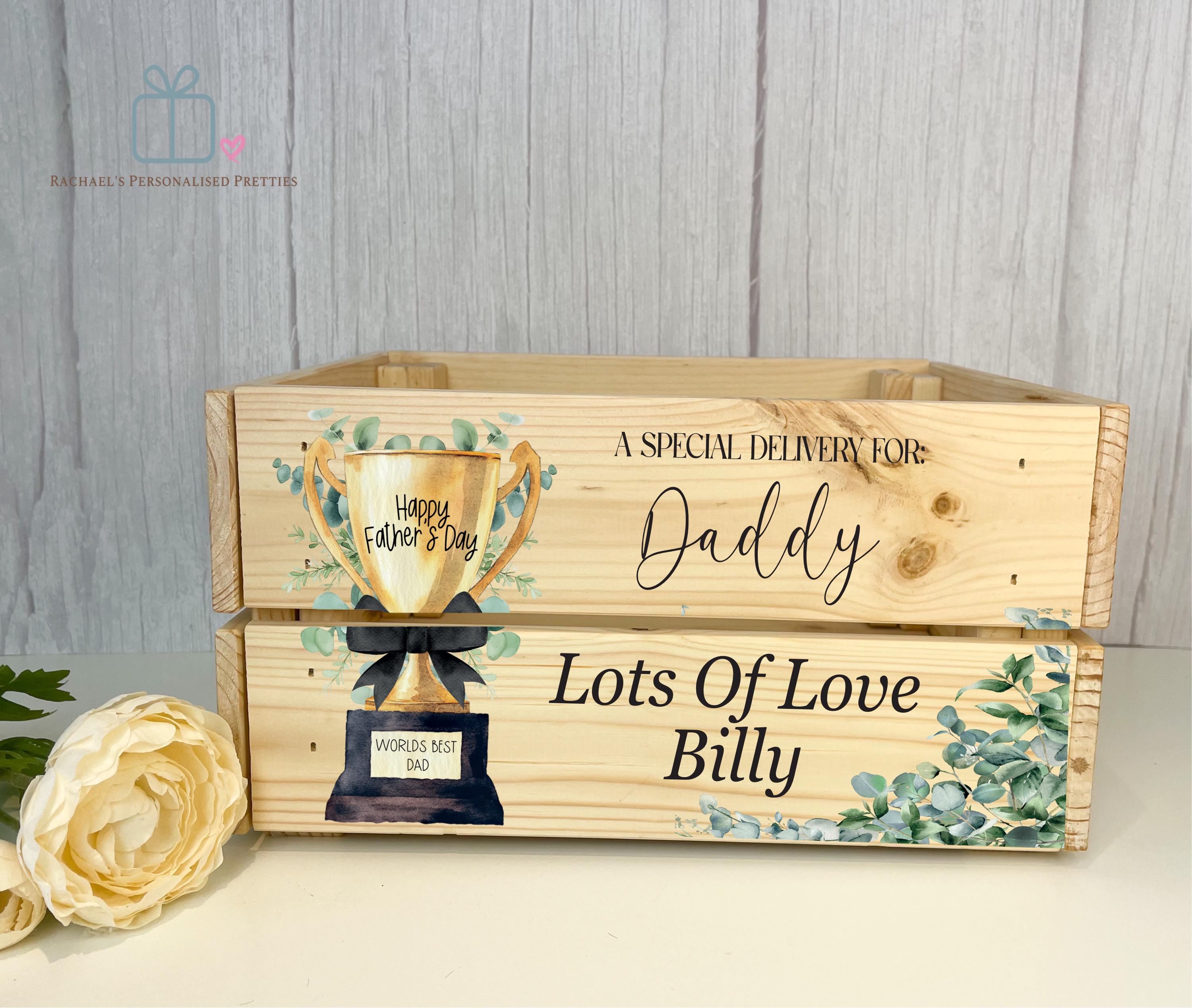 Personalised Wooden Fathers Day Gift Box Crate, First Fathers Day G...