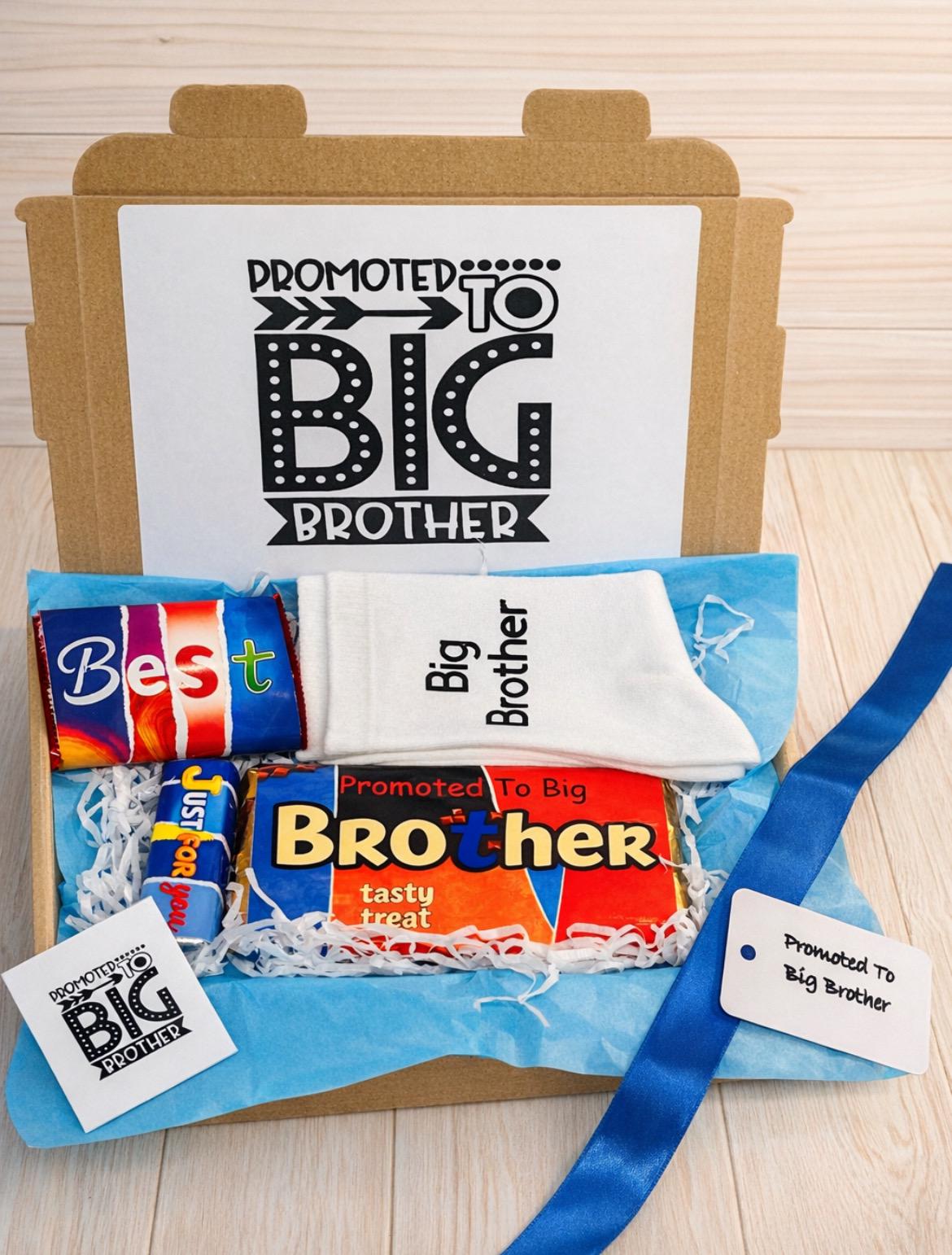 Lovely gift for a new big brother / big sister.. Personalised gift. The chocolate bars are printed o...