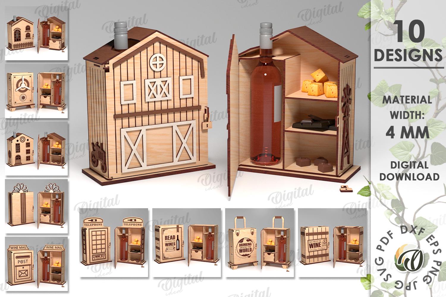 3D Wine and treats boxes bundle, house shaped wine and snack holder...