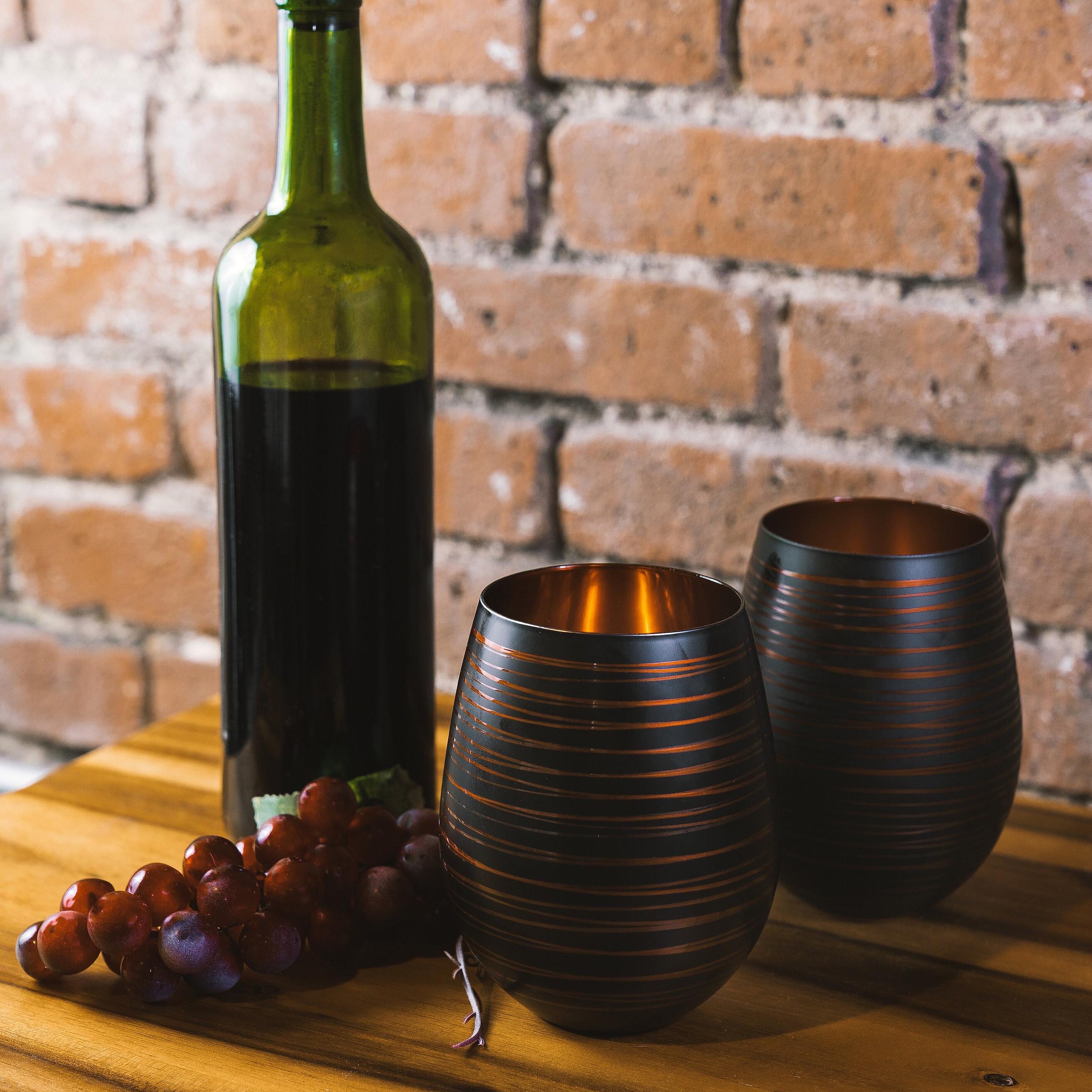 Stemless Wine Glass Black Wine Glasses Copper Wine Glasses Wine Lov...
