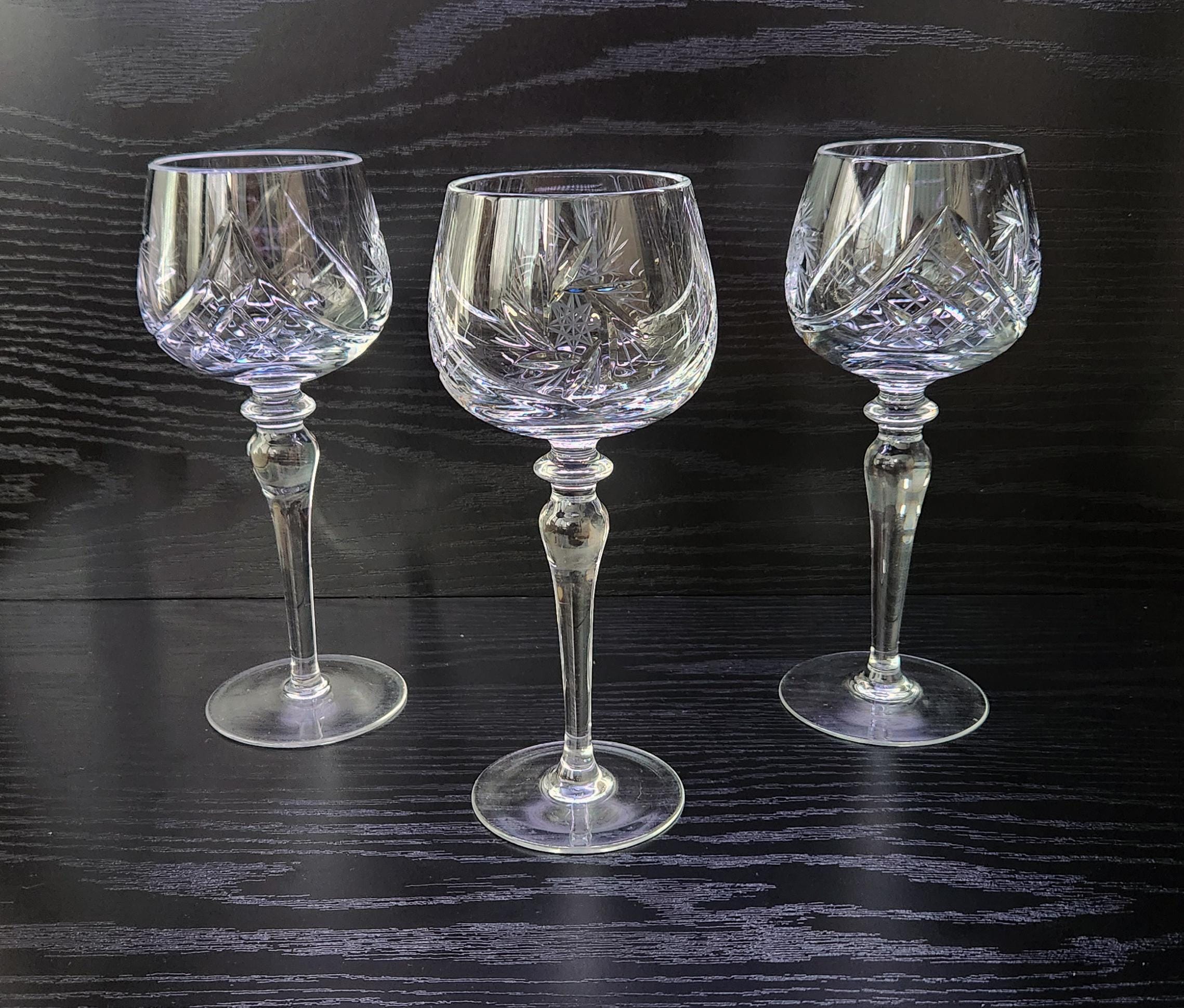 Vintage Ajka Crystal Wine Goblets - Hand-Cut Bohemia Pinwheel Desig...