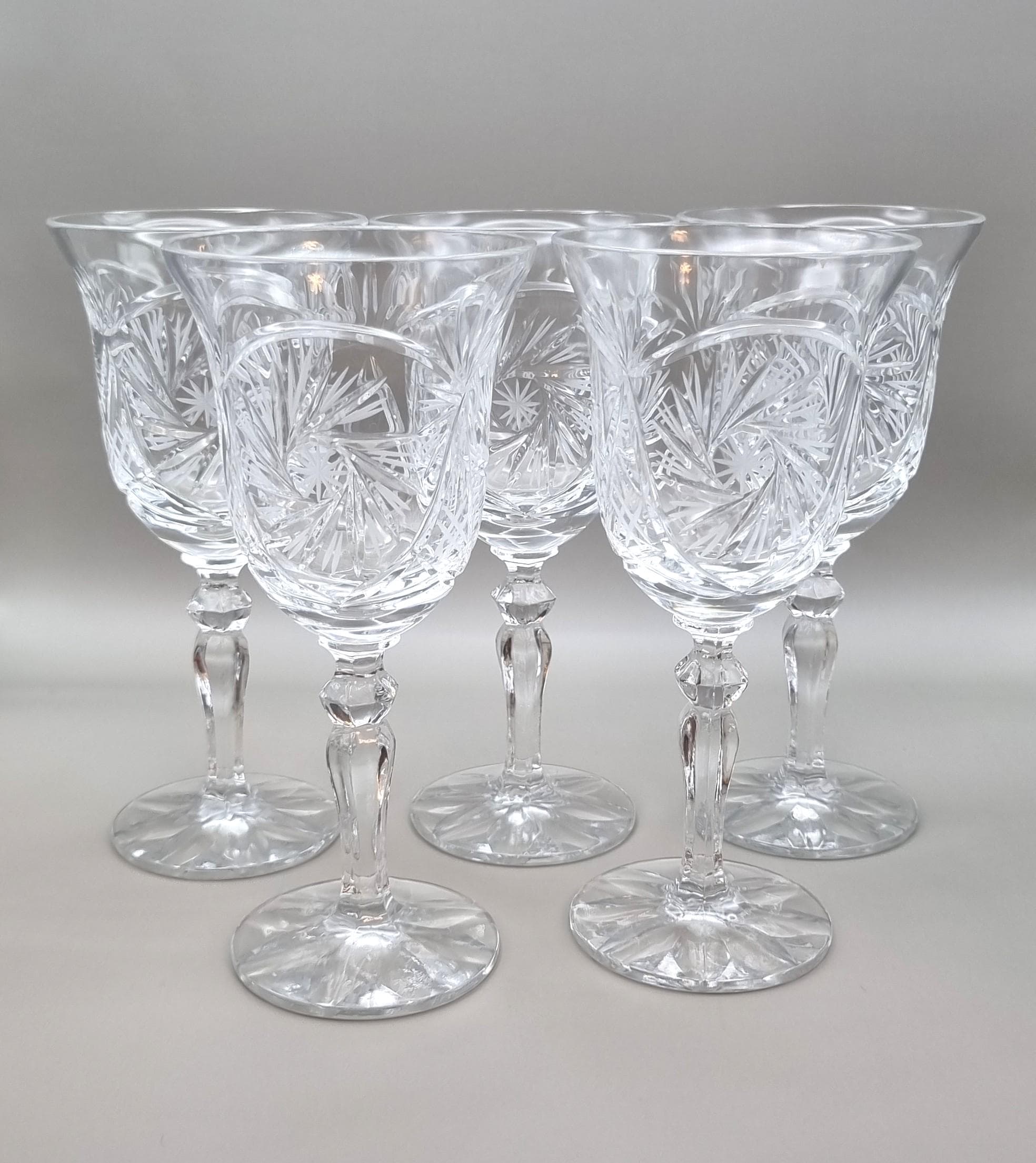 Vintage Bohemia Crystal Wine Glasses - Pinwheel Design, Set of 5