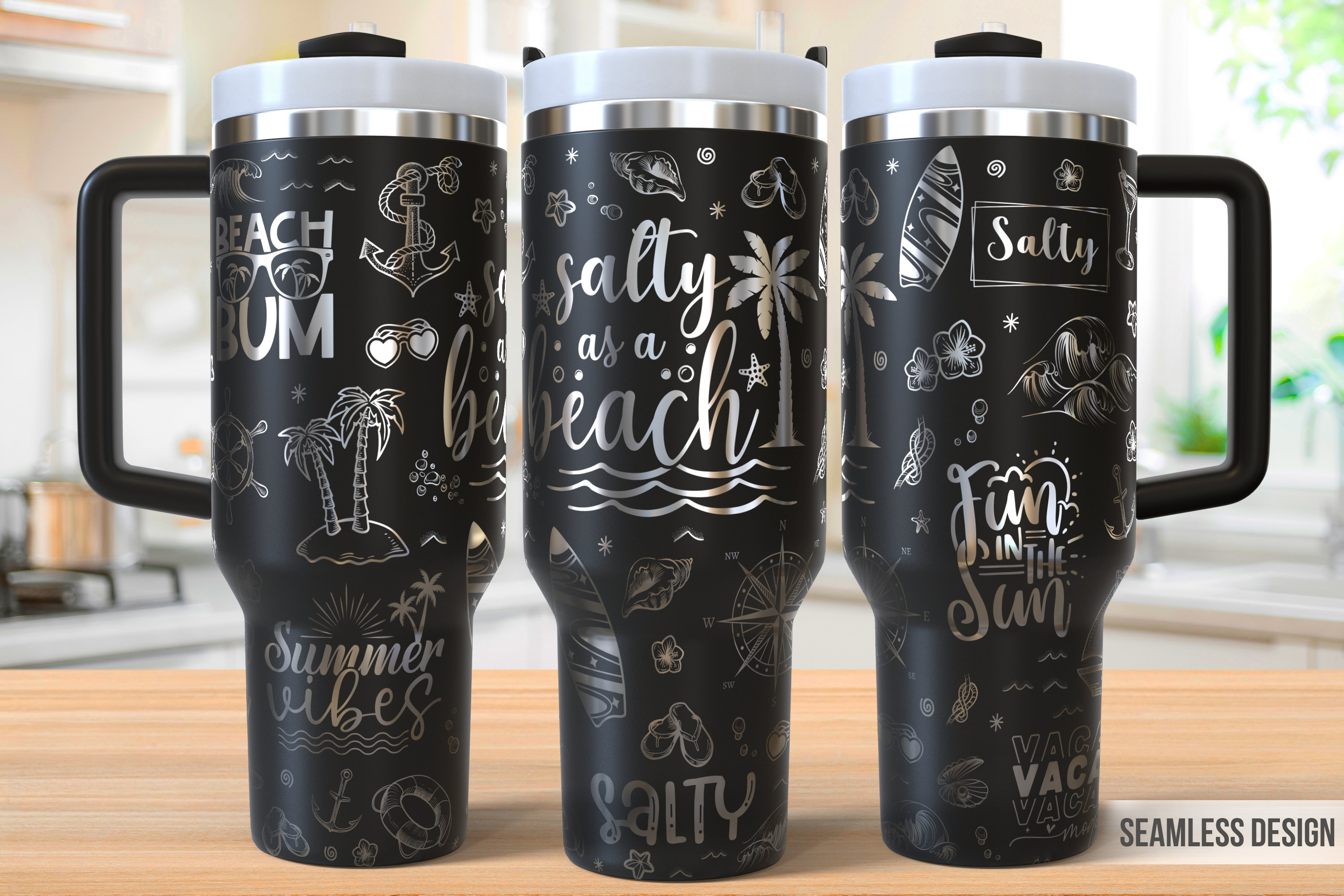 Salty Beach Tumbler Laser Svg, Summer 40oz Tumbler Full Wrap Laser ...