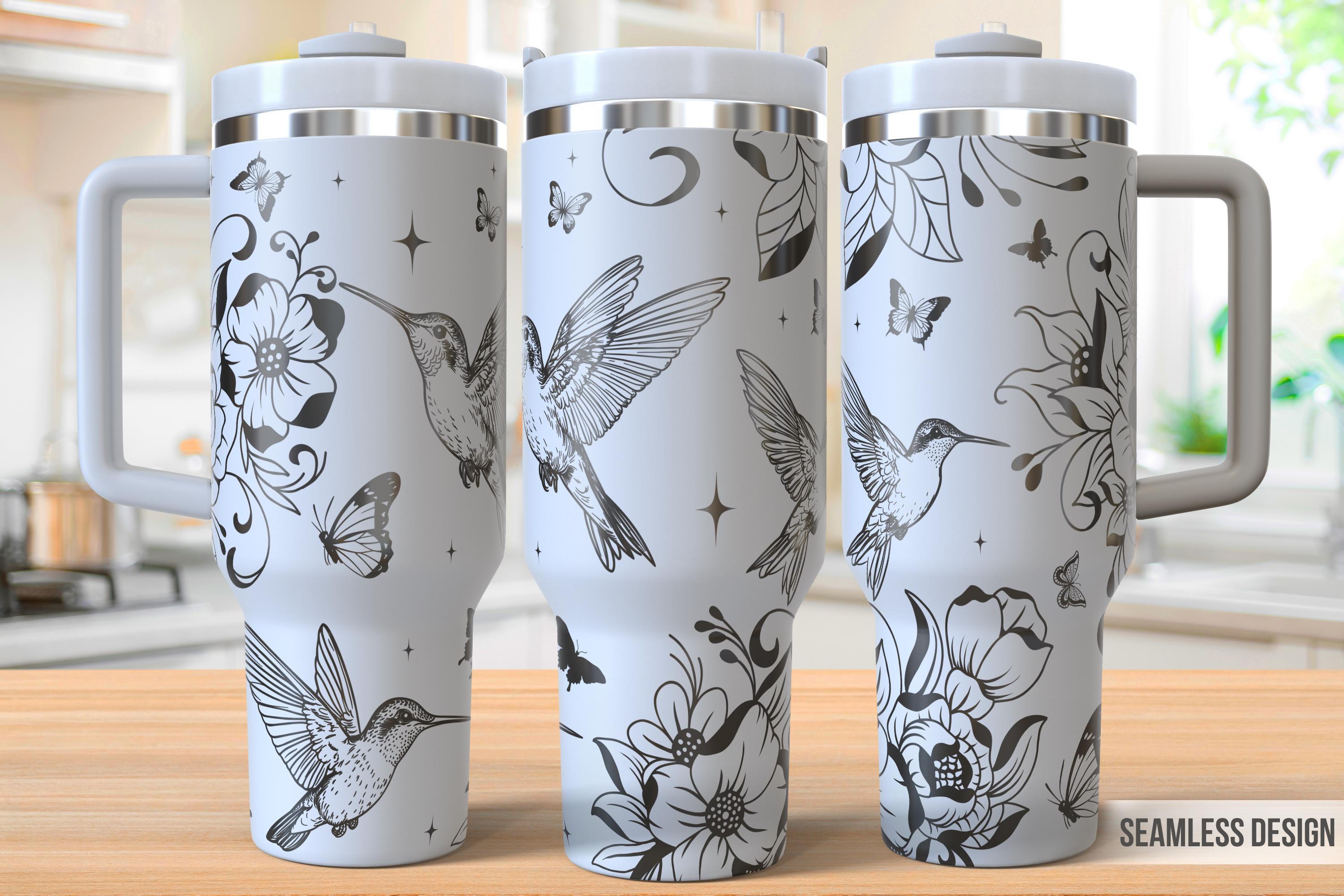 Hummingbirds Tumbler Laser Svg, Flower 40oz Tumbler Full Wrap Laser...