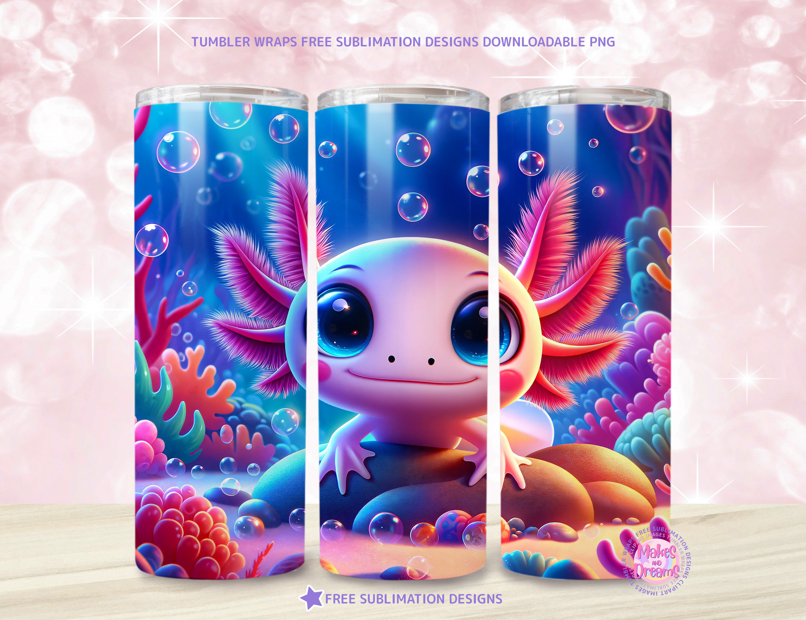 "Axolotl tumbler wrap png 20oz skinny tumbler sublimation design Cute Axolotl png Tumbler wrap ...