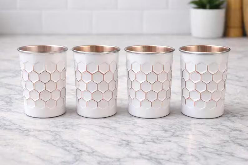 Experience the ancient Ayurvedic tradition of drinking Tamra Jal with this 100% pure hammered copper...