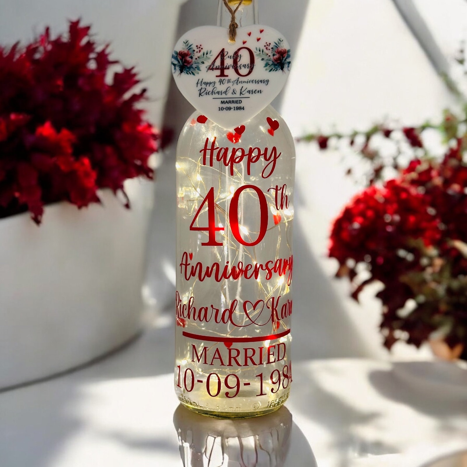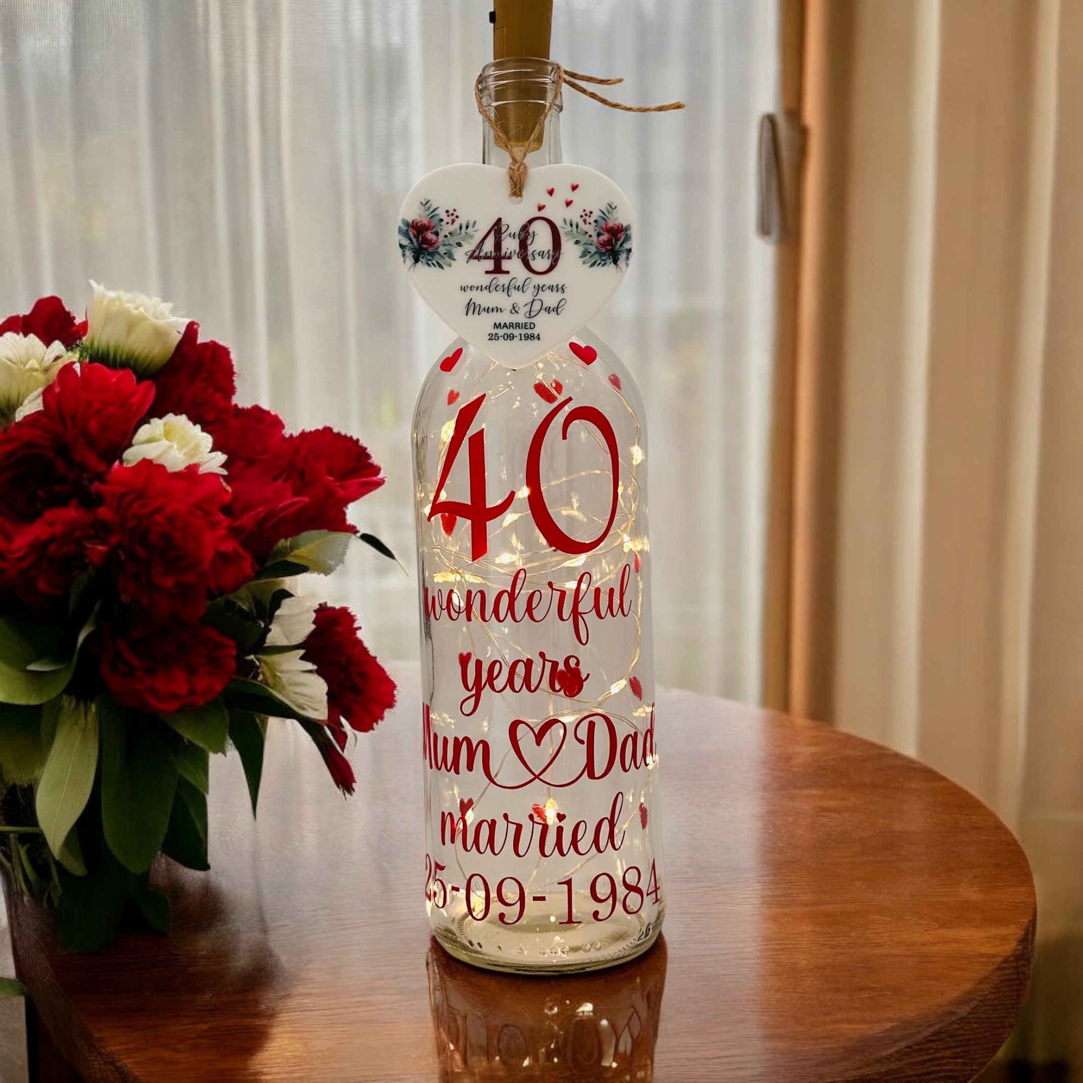 This beautiful personalised light up 40th Anniversary glass wine bottle, is the perfect gift for you...