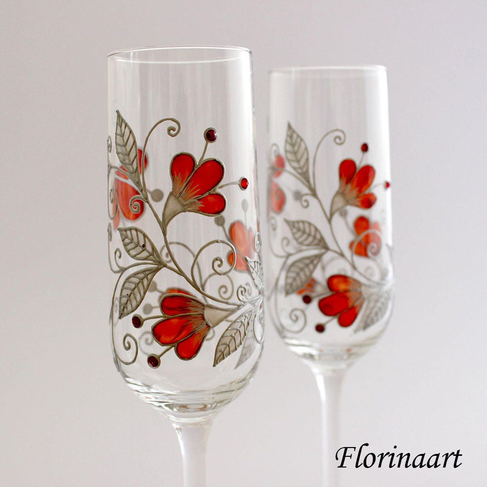 Celebrate 40 years of love with these elegant ruby-themed anniversary champagne flutes - a perfect g...