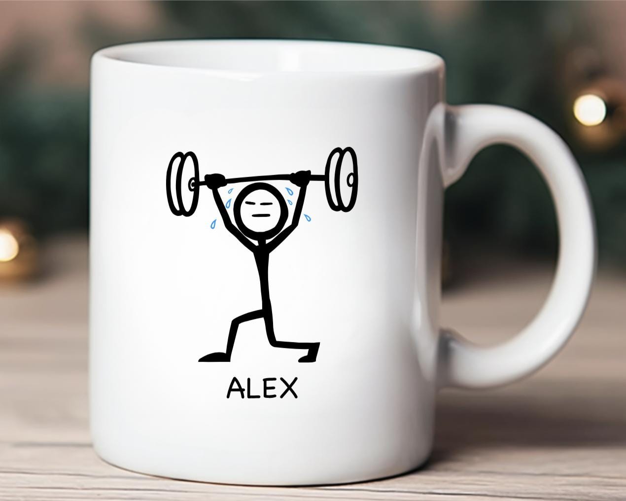 Personalised Weight Training Stick Man Mug. CERAMIC MUG DETAILS: 11oz (330ml) Bright white glossy ce...