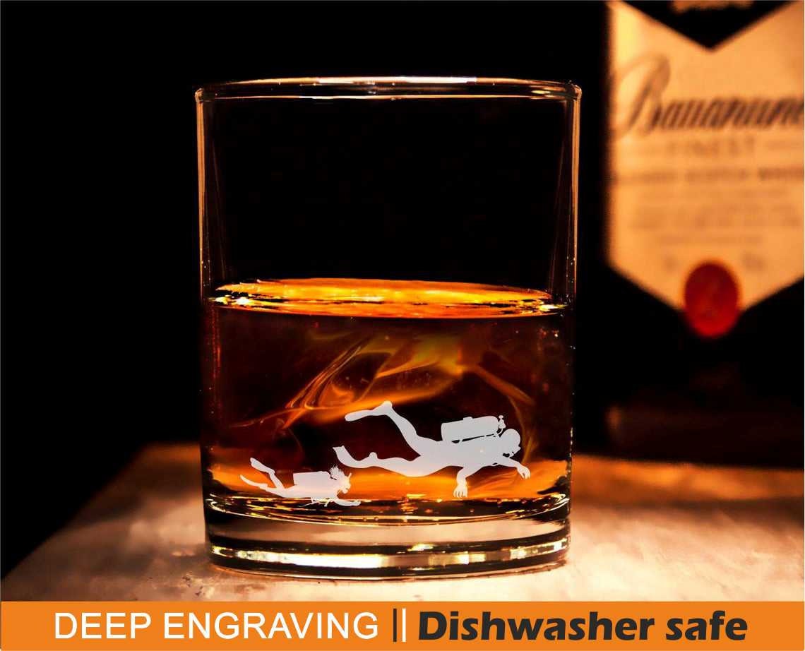 Scuba Diver Whiskey Glass, Whiskey Swimmer Glass, Engraved Scuba Di...