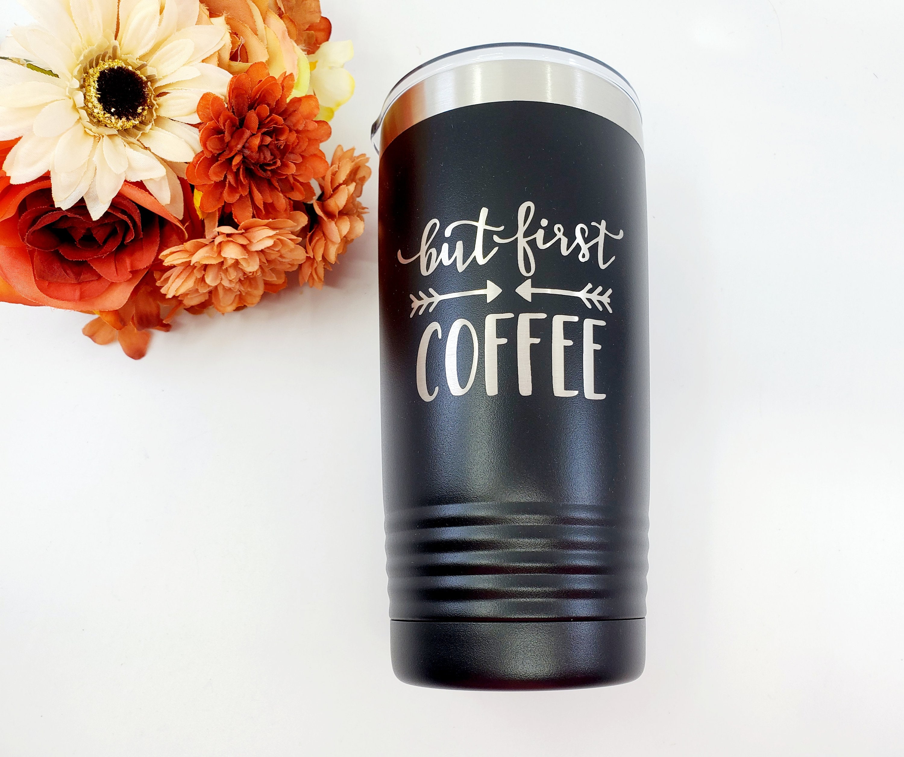 Insulated Coffee Cup- Travel Coffee Mug- But First Coffee- Coffee L...