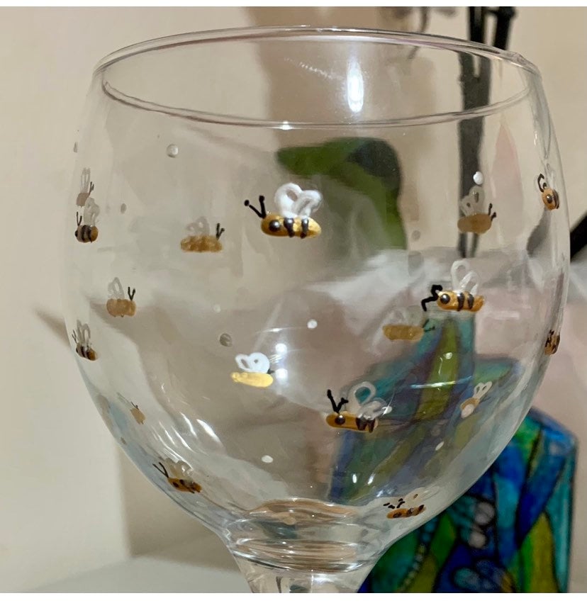 Large gin glass/ handpainted gin glass/ gin gift/ bee gin glass/ fl...