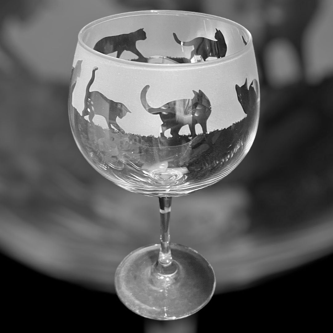 CAT GIN GLASS | 70cl Glass Gin Balloon with Cat Frieze Design | Gin...