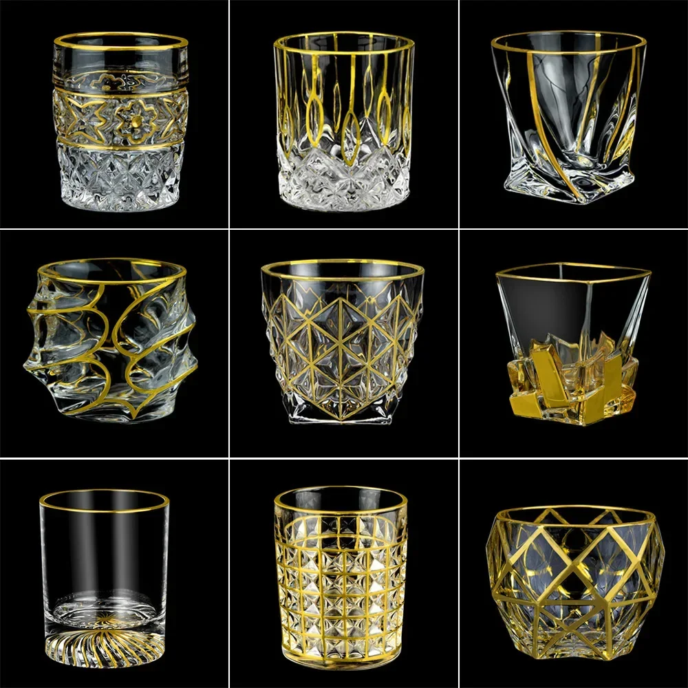 Gold Statue Handdrawn Crystal Glass, Whiskey Cup, Home Water, Carved Fruit Juice Cup, Gold Statue
