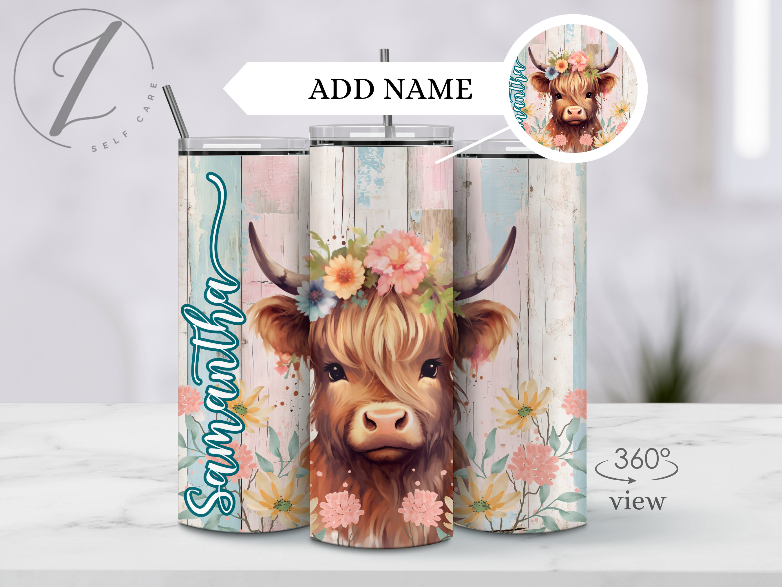 Highland heifer cow tumbler, Personalized gift for cow lover, Tumbl...