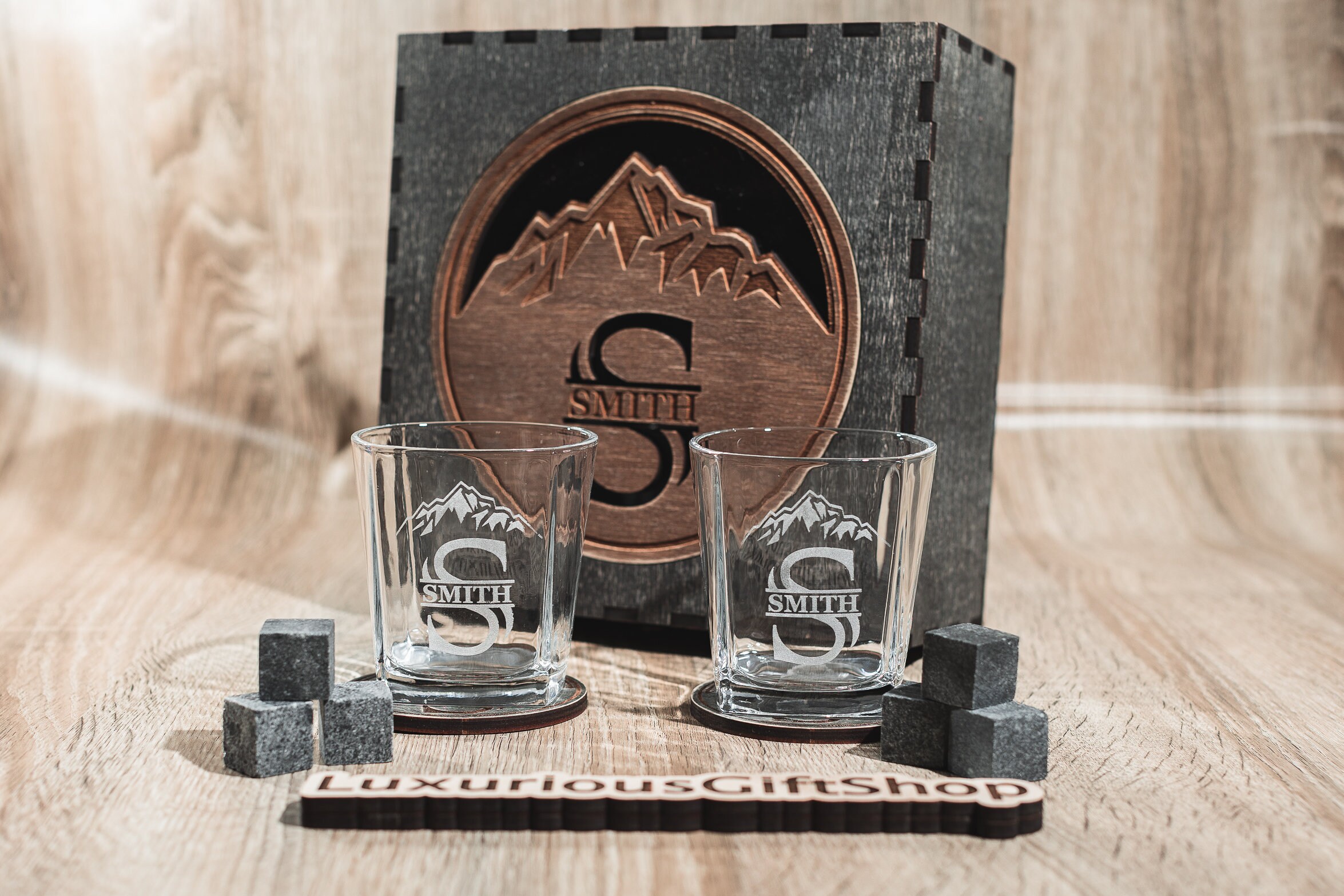 "Whiskey Glasses, Christmas Gift, Bourbon Glasses, Whiskey Glasses for Dad, Mountain Whiskey Gl...