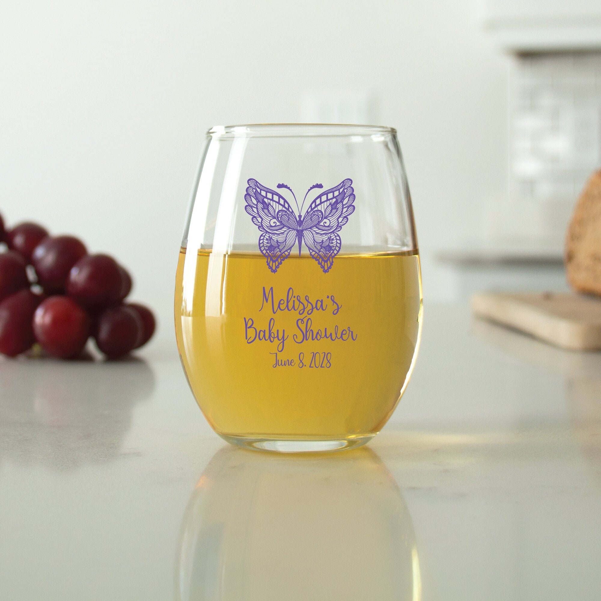 24 pcs - Personalized 9 oz. Stemless Wine Glass-Decorative Butterfl...