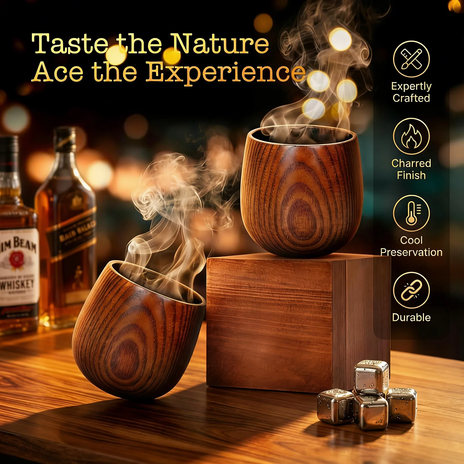 Personalized Oak Whiskey Tumbler: Engraved Bourbon Cocktail Glass