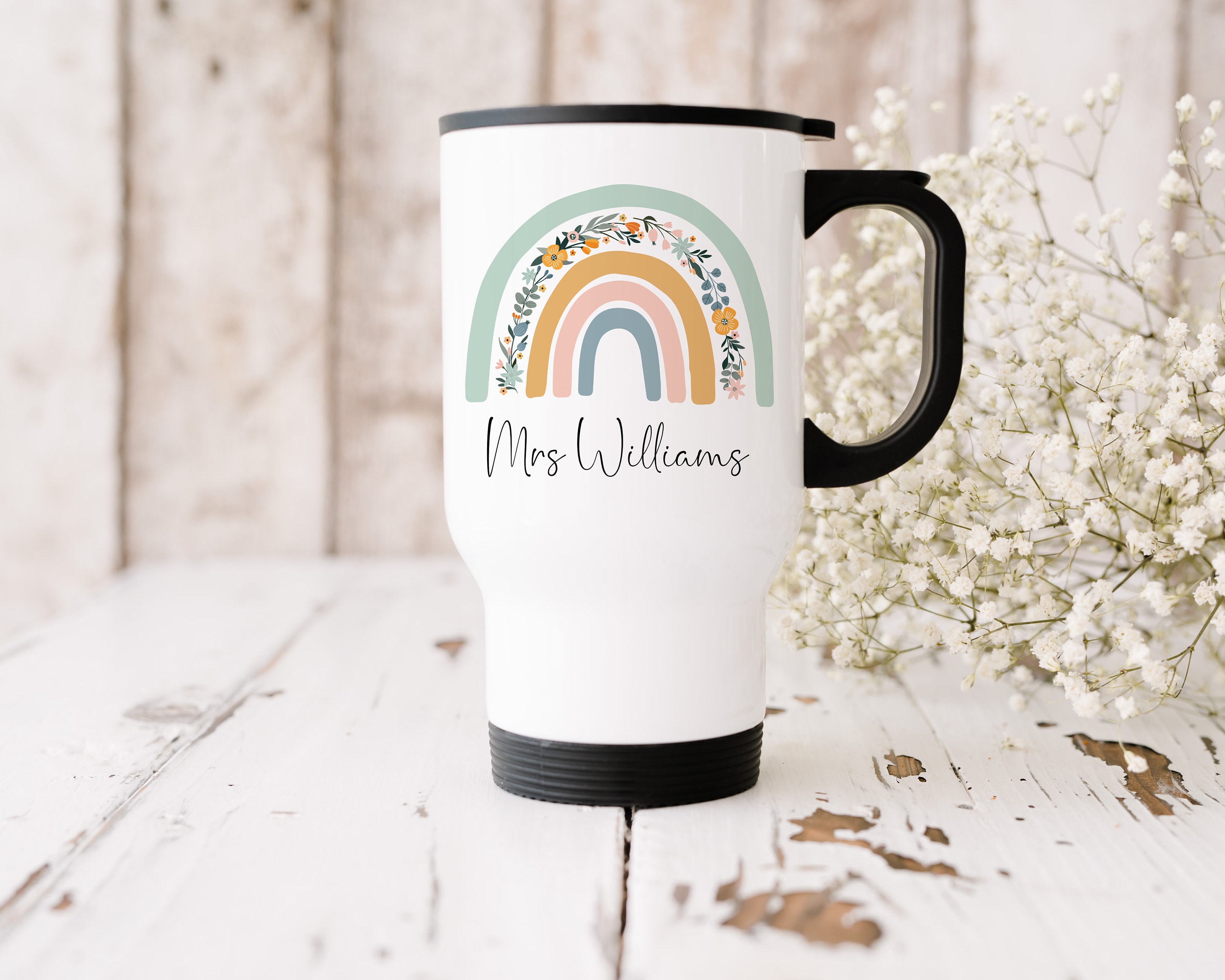 Teacher Travel Mug, Teachers Gift, Teacher Rainbow Cup, Insulated Coffee Cup Mug, Personalised Trave...