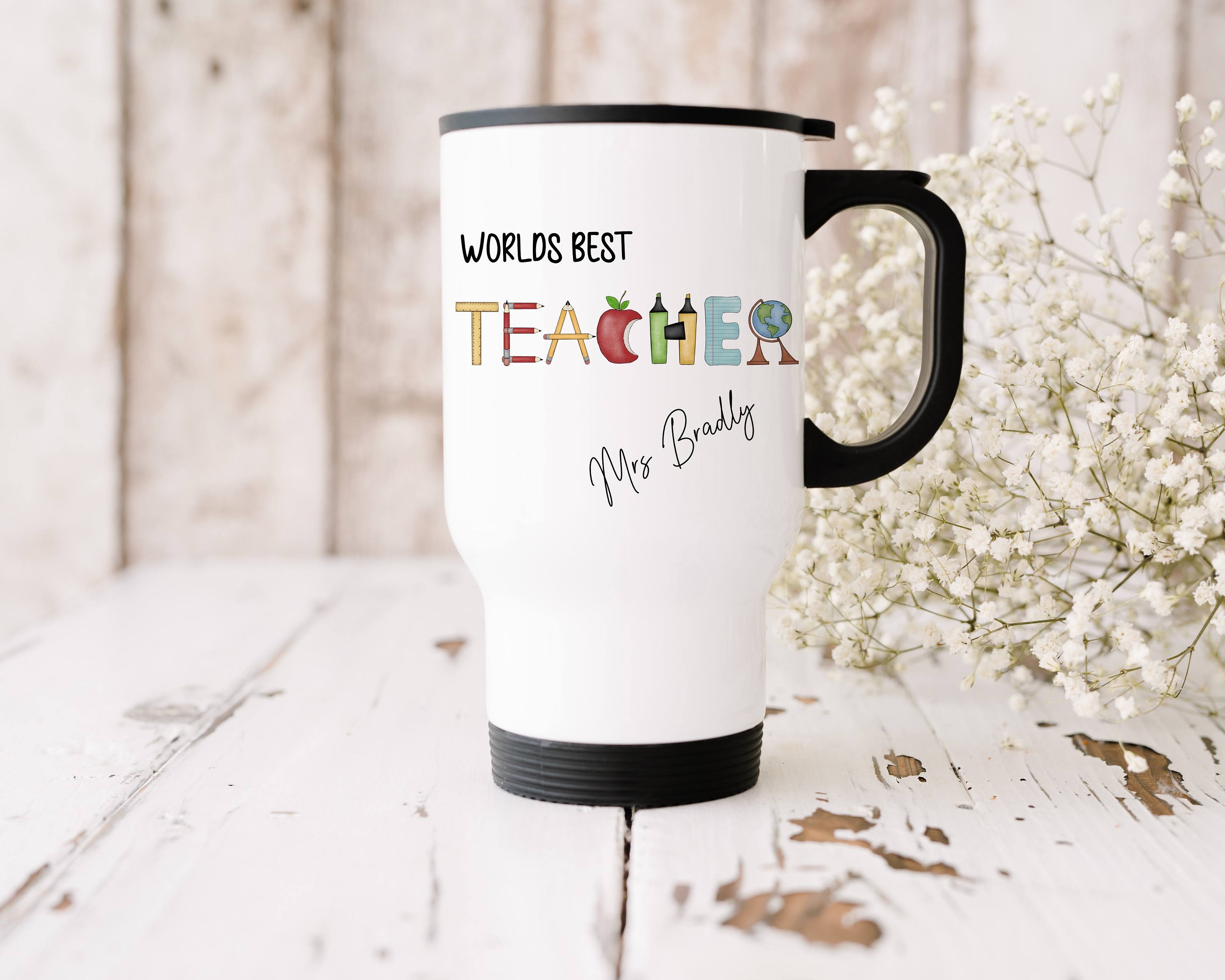 Teacher Travel Mug, Teachers Gift, worlds Best Teacher Cup, Insulated Coffee Cup Mug, Personalised T...