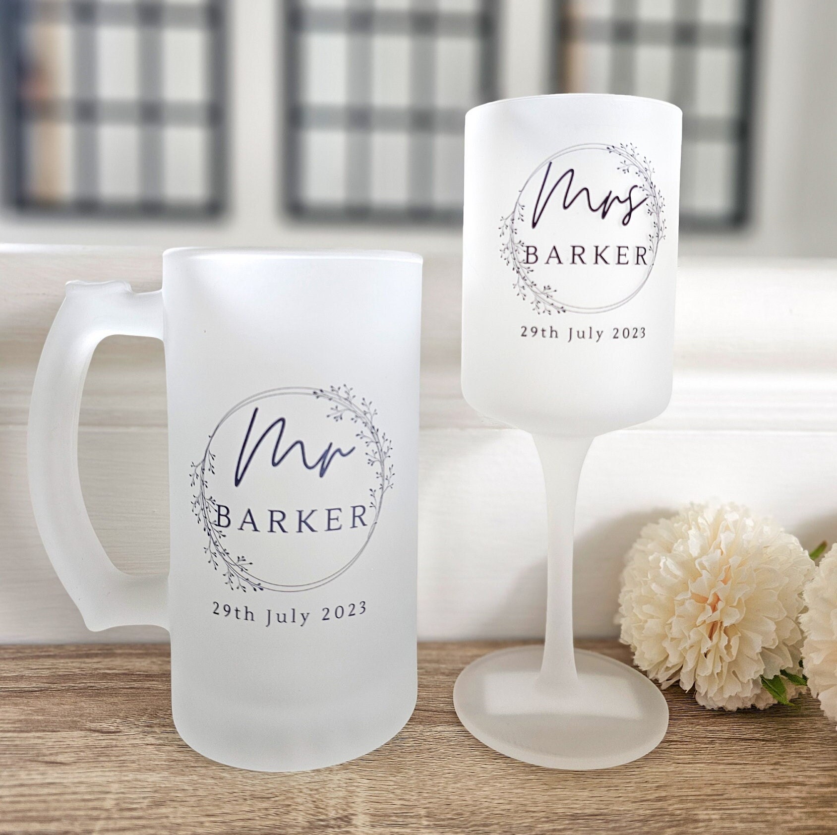 Personalised Bride and Groom Glasses, Personalised Mr and Mrs Glass...