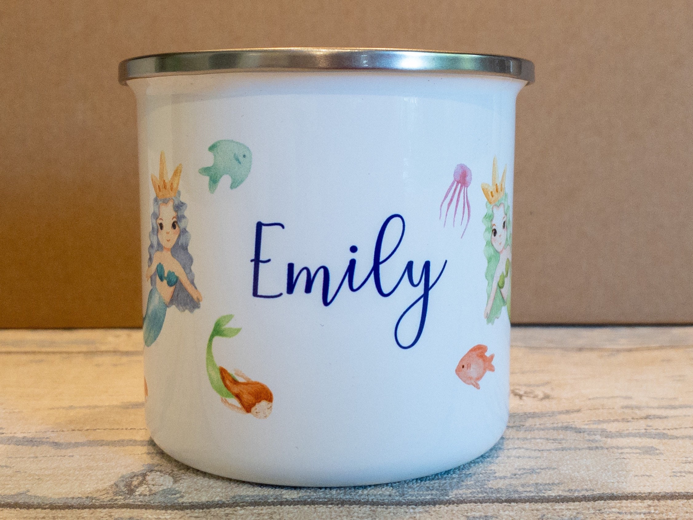 Personalised Mermaid Enamel Mug, Personalised Mug, Hot Chocolate Mu...