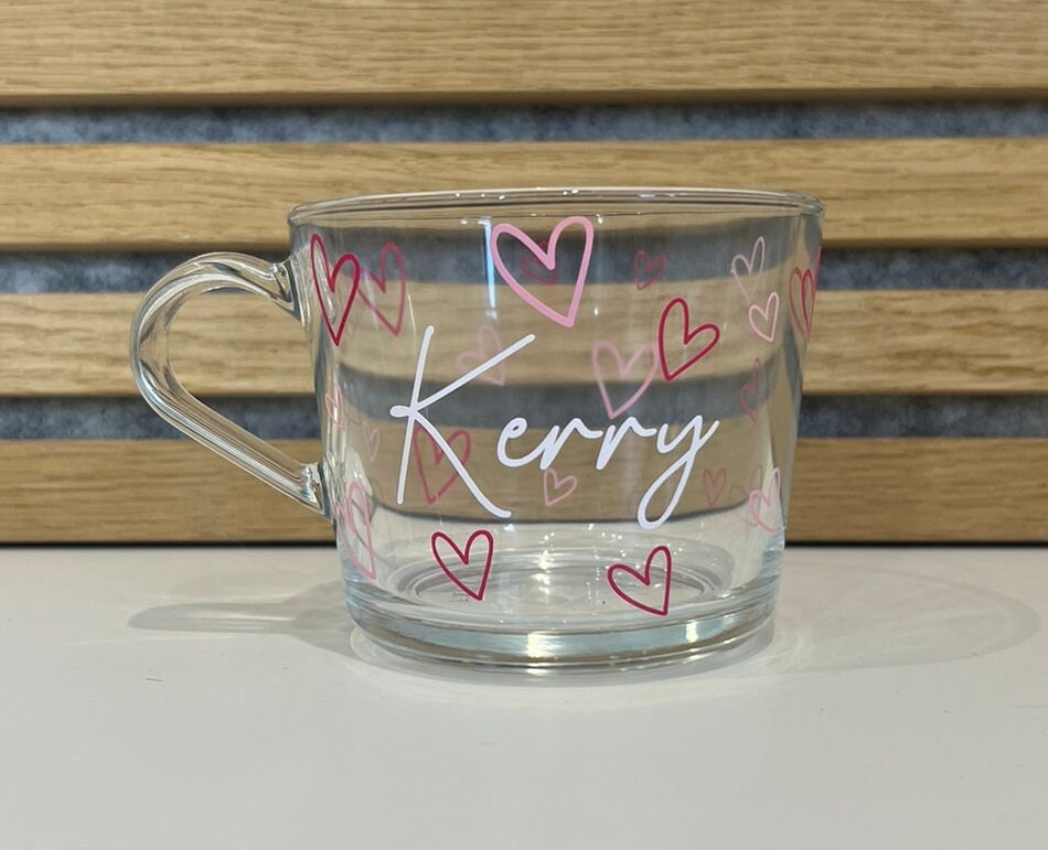 Personalised Heart Mug ,Personalised Mug, Personalised Glass Mug, H...