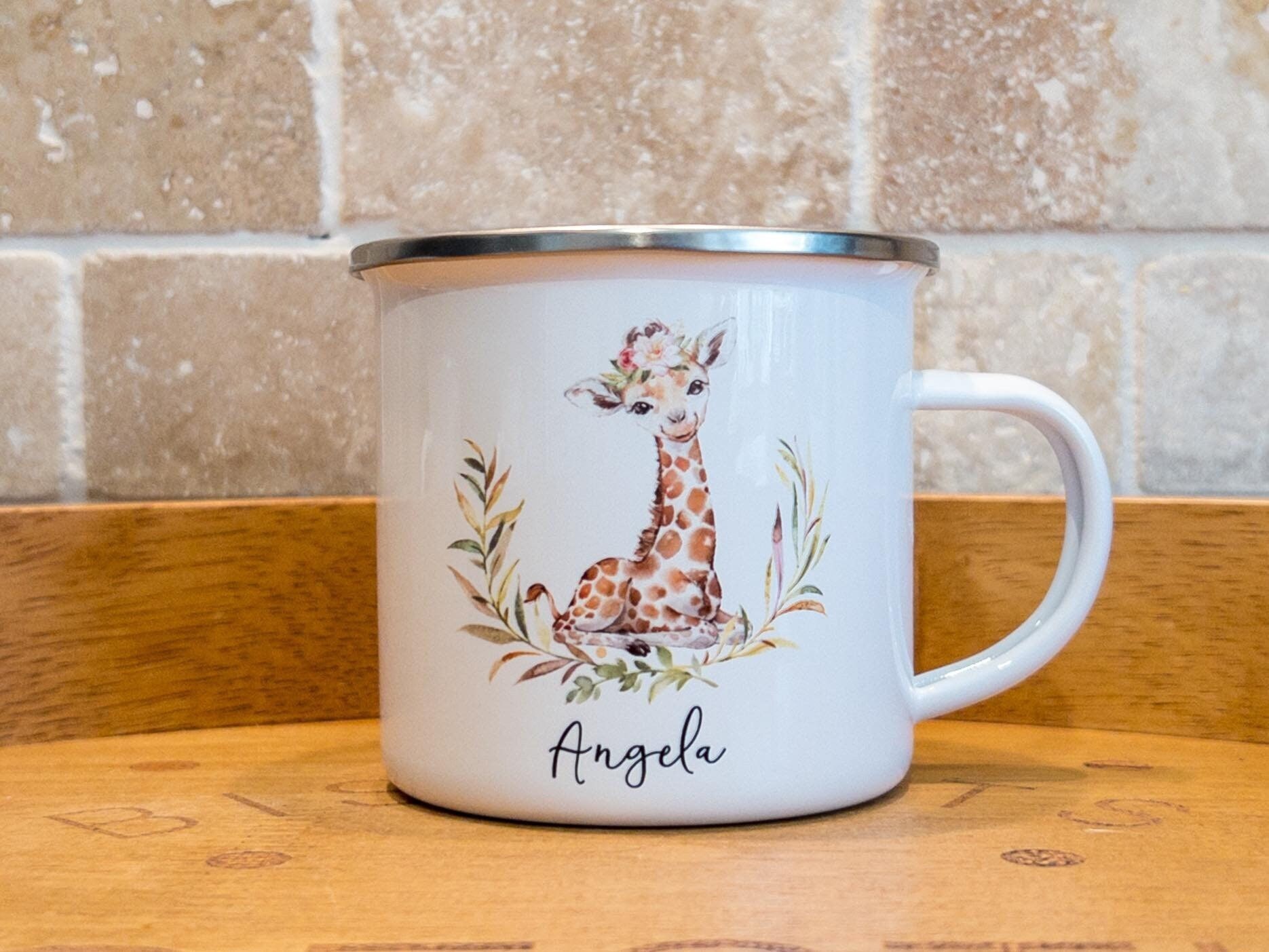 Personalised Giraffe Enamel Mug, Personalised Mug, Hot Chocolate Mu...